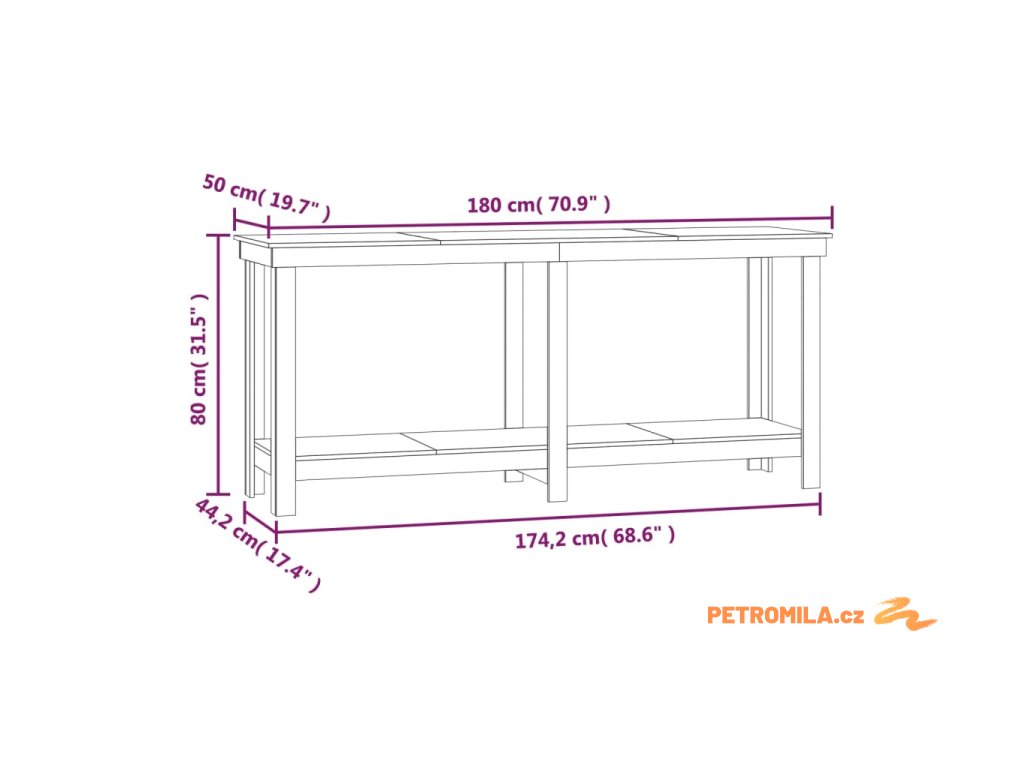 - Rozměry: 180 x 50 x 80 cm (Š x H x V)