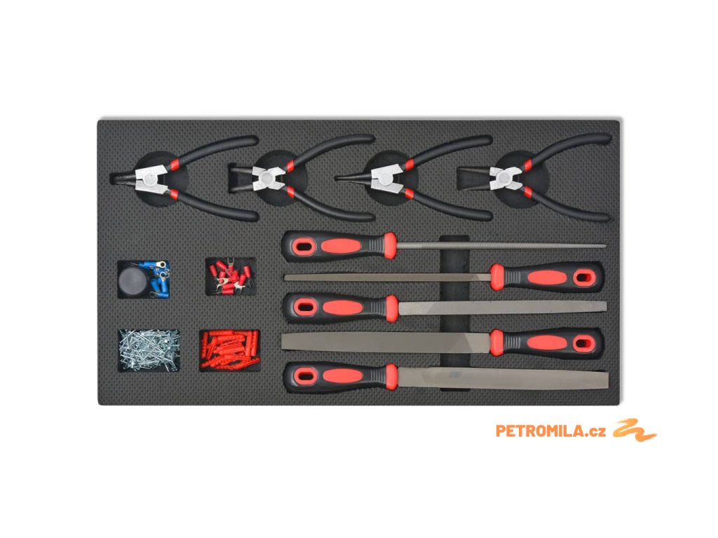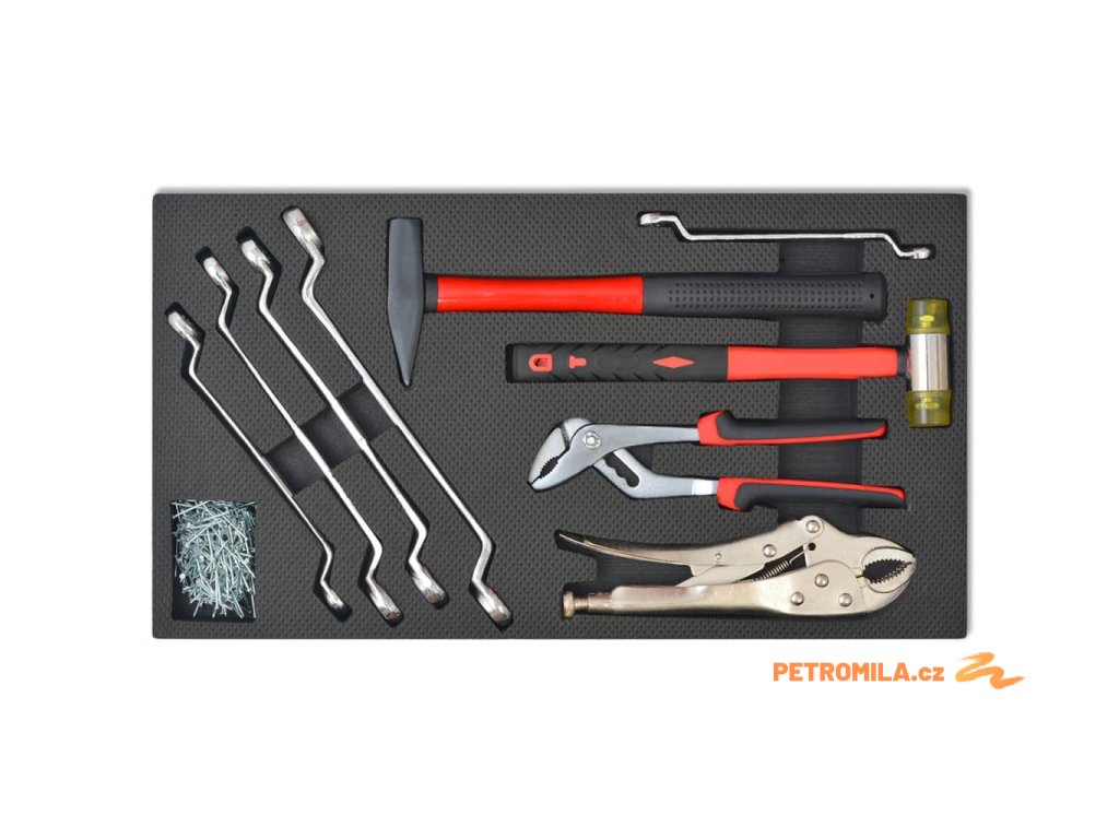 - 17x kombinovaný klíč: 6, 7, 8, 9, 10, 11, 12, 13, 14, 15, 16, 17, 18, 18, 20, 21 a 22 mm