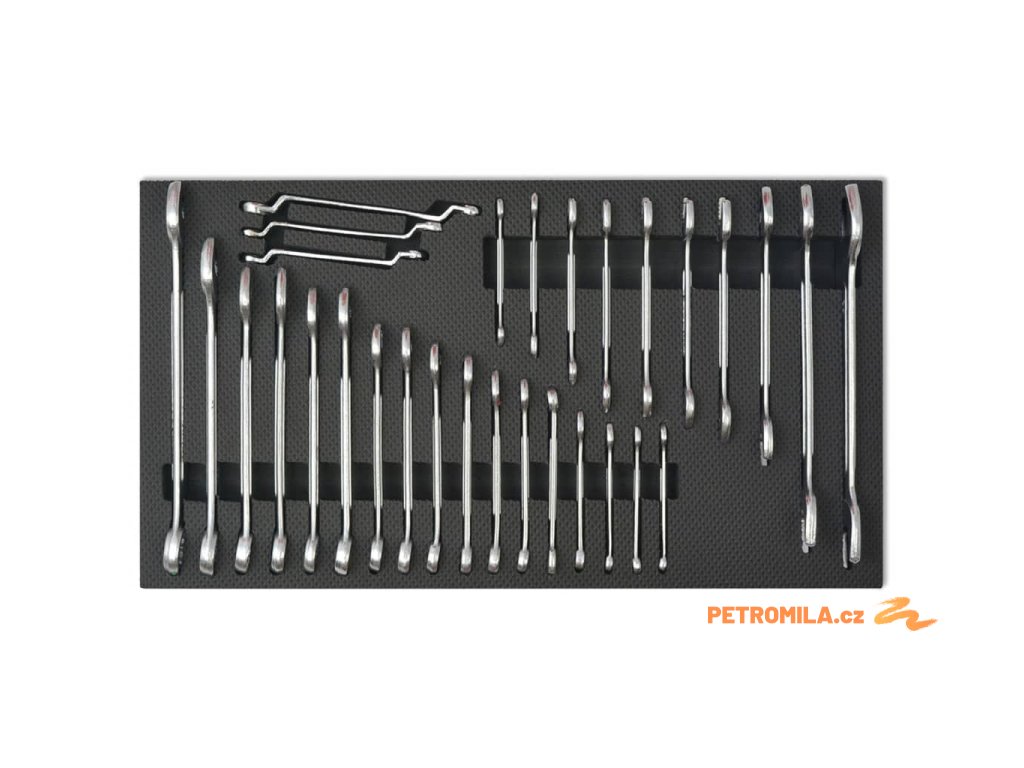 - 10x otevřený klíč: 6-7, 8-9, 10-11, 12-13, 14-15, 16-17, 18-19, 20-22, 24-27 a 30-32 mm