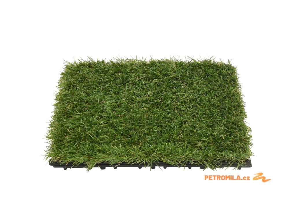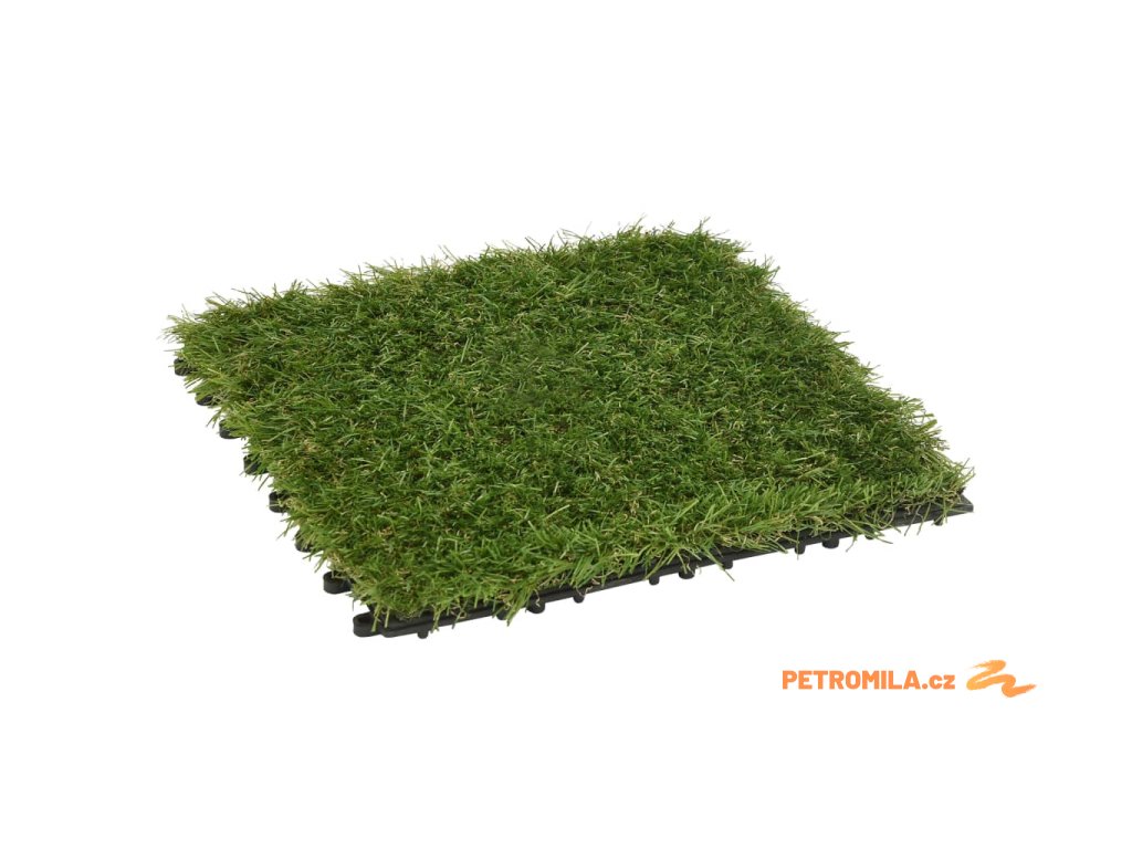 Tato velmi hustá umělá tráva se vzhledem blíží přírodní trávě a dokonale splyne s okolním prostředím. Travnaté dlaždice se velmi snadno spojují praktickým zásuvným systémem. Jsou také velmi měkké a příjemné na dotek. Výstupky na zadní straně zajišťují, že dlaždice zůstanou na svém místě.