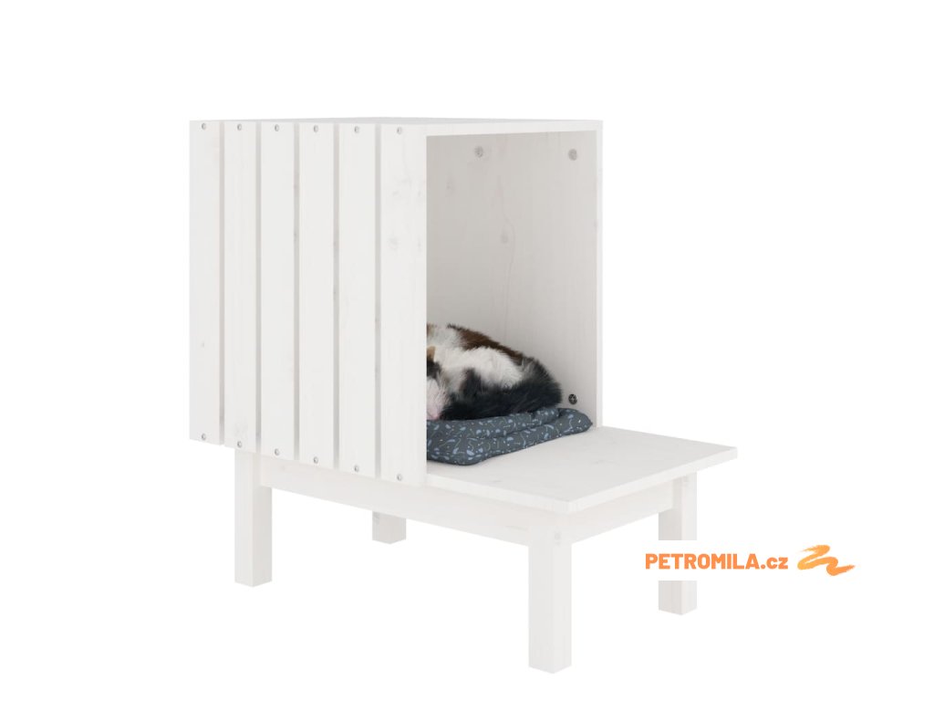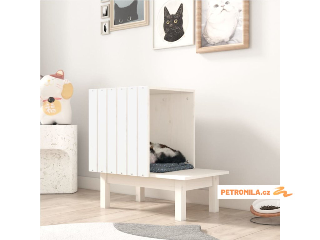 Domeček pro kočky bílá 60 x 36 x 60 cm masivní borové dřevo