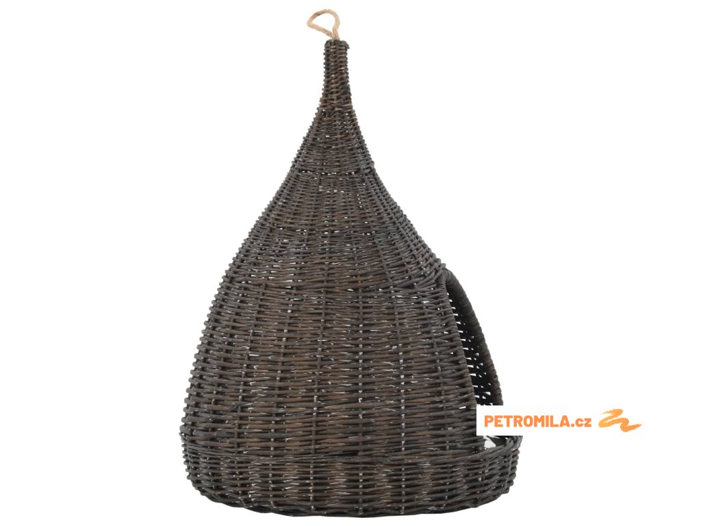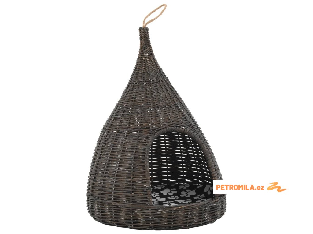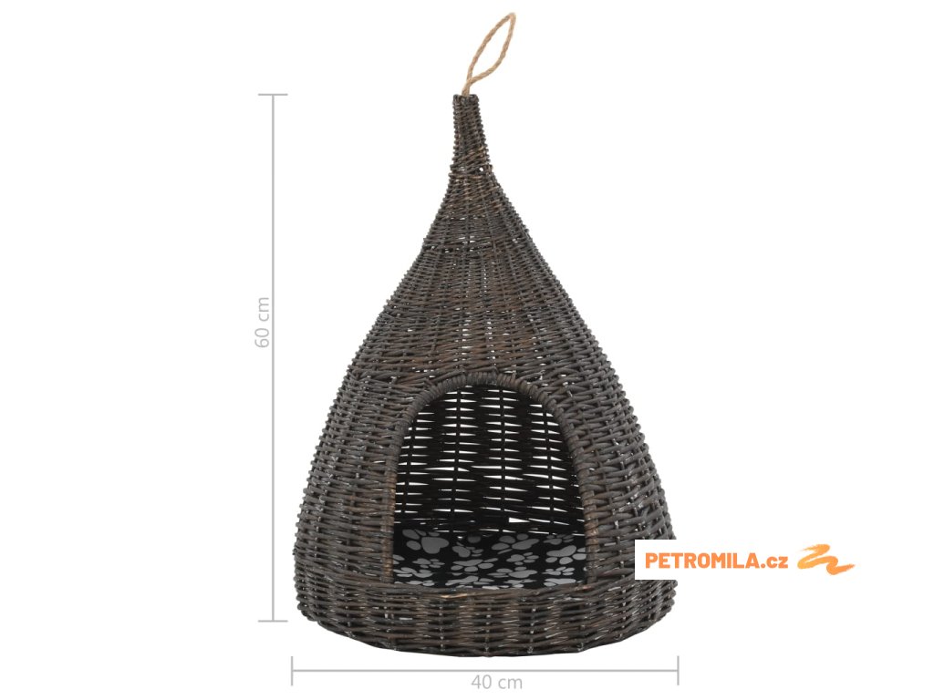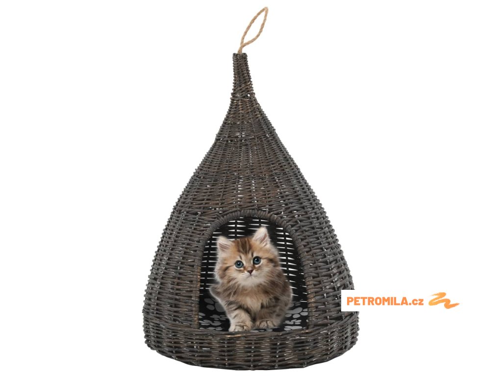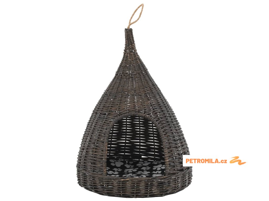 Domeček pro kočky s poduškou šedý 40 x 60 cm přírodní vrba týpí