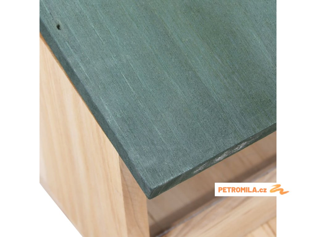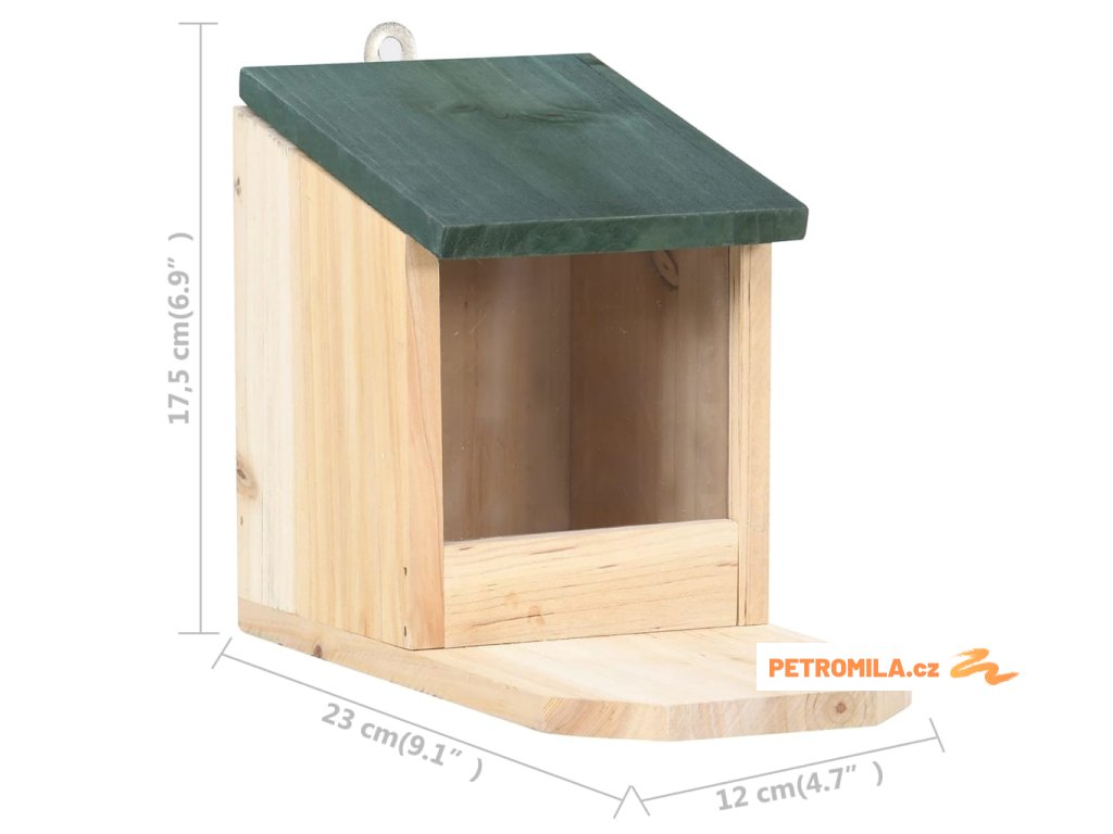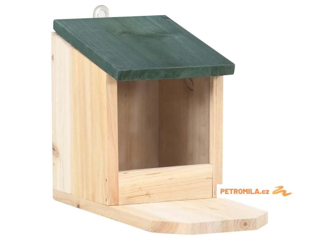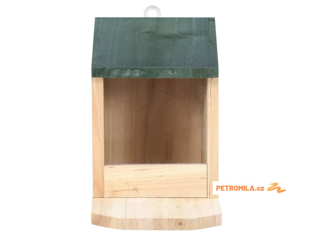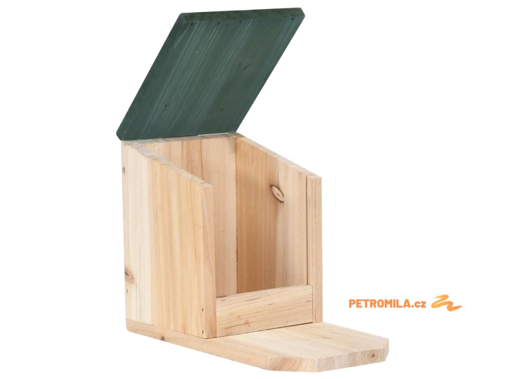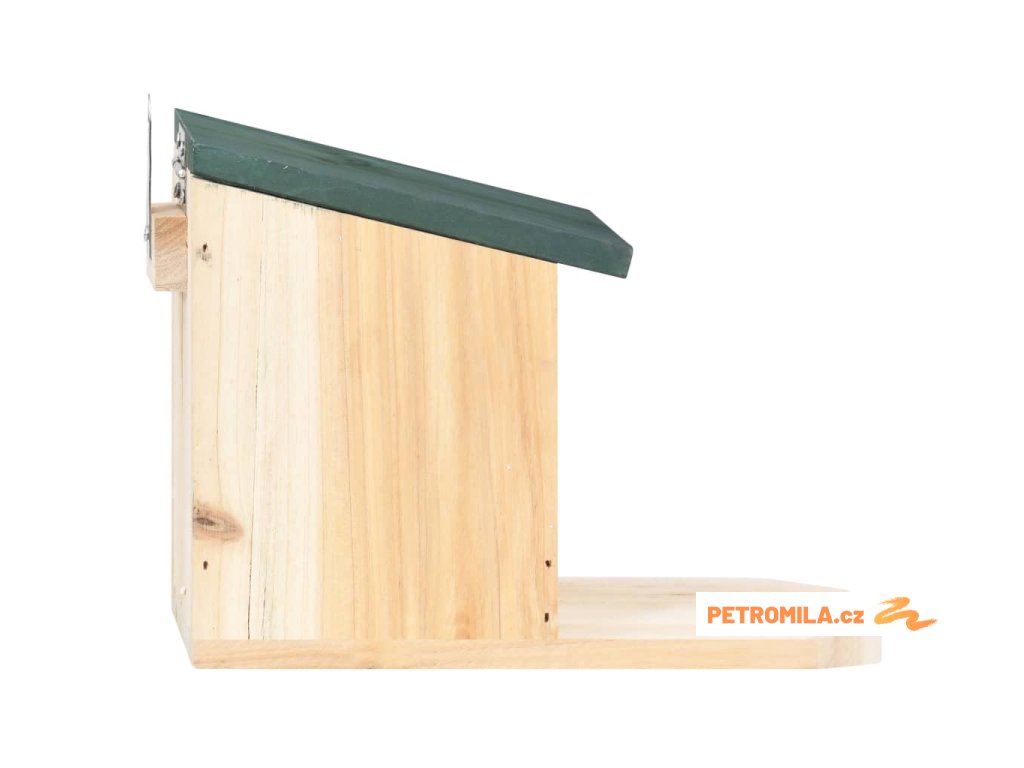 Krmítko pro veverky je vyrobené z jedlového dřeva, takže je stabilní a má dlouhou životnost. PVC deska je pružná a chrání krmivo před nečistotami a vlhkostí. Horní část tvoří sklopná stříška pro snadné otevírání a zavírání. Chytré veverky dokážou stříšku přizvednout a dostat se ke krmivu. Poměrně velké místo před domečkem je dostatečně prostorné, aby se zde veverka během krmení mohla bezpečně uvelebit. Pokud stříšku otevřete, můžete do krmítka snadno doplnit krmivo.