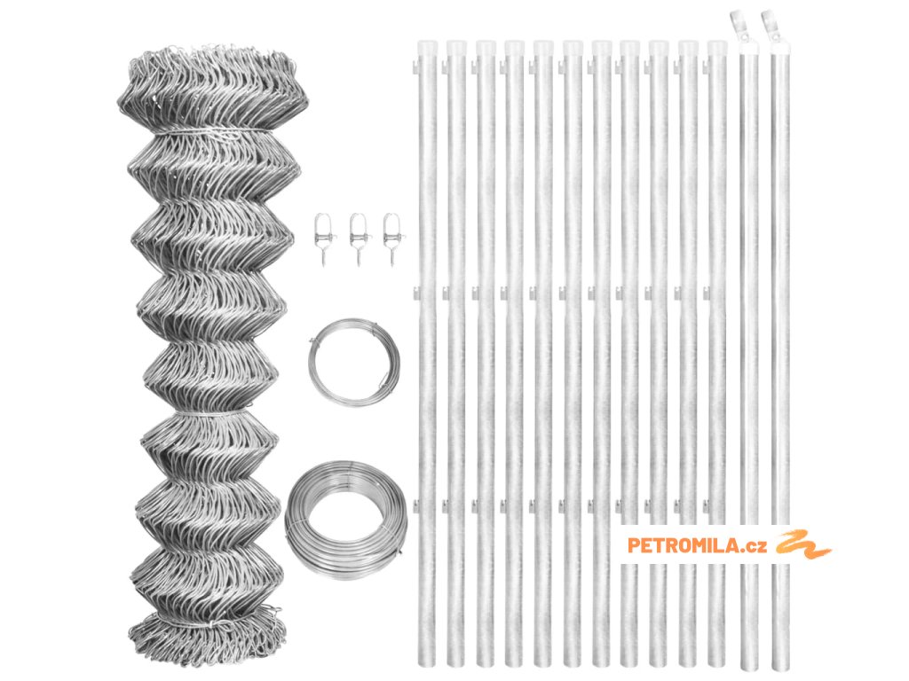 Zásilka obsahuje roli 1 pozinkovaného drátěného pletiva, 11 pozinkovaných plotových sloupů, 2 pozinkované plotové vzpěry, 1 napínací drát, 1 vázací drát a 3 napínače drátu.