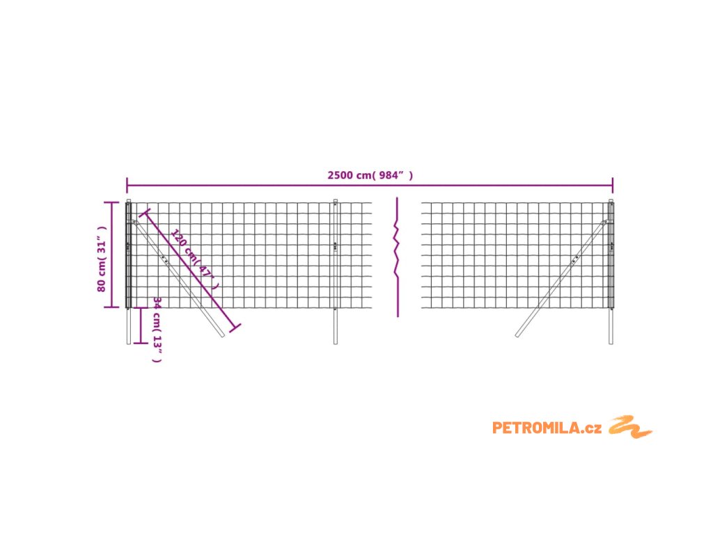 Drátěný plot antracitový 0,8 x 25 m pozinkovaná ocel