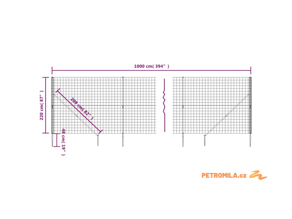 - Rozměry pletiva: 2,2 x 10 m (V x D)