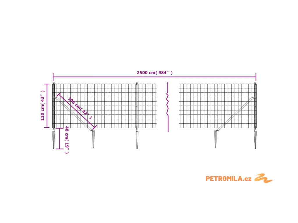 - Rozměry pletiva: 1,1 x 25 m (V x D)
