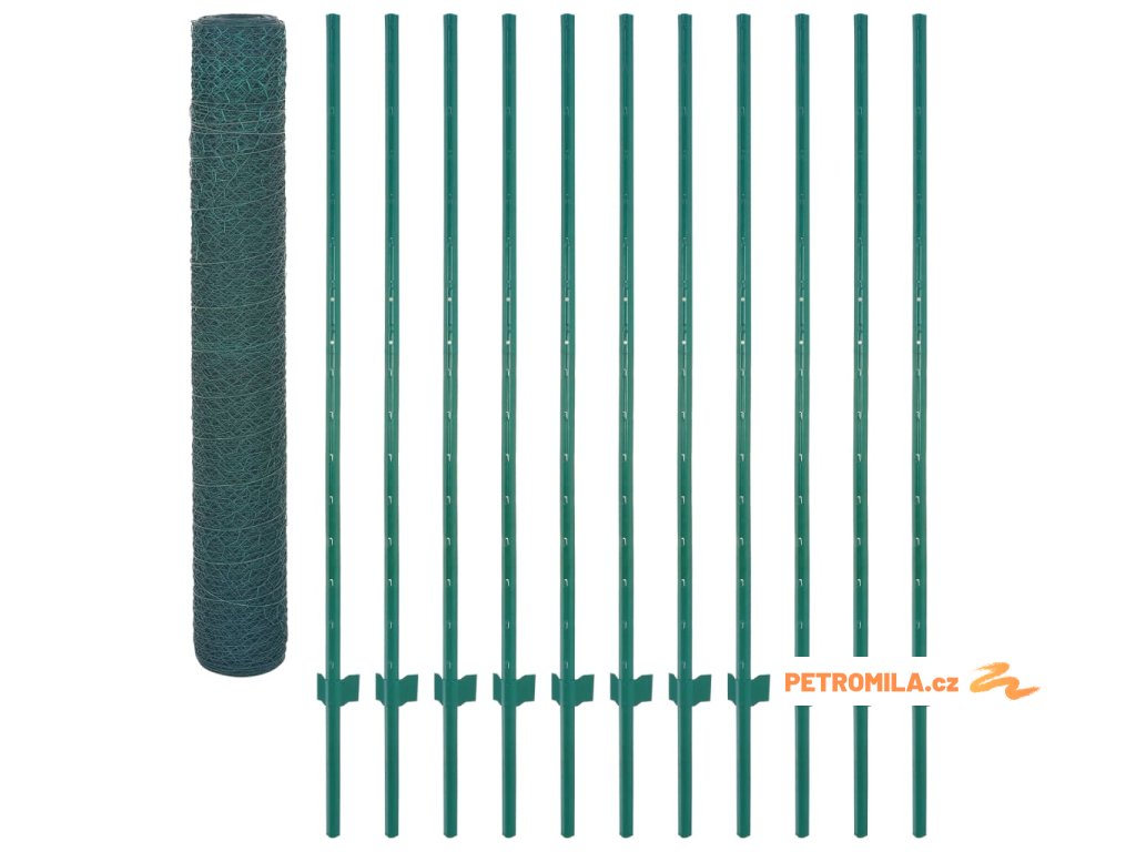 - Dodávka obsahuje 2 role drátěného plotu a 11 sloupků