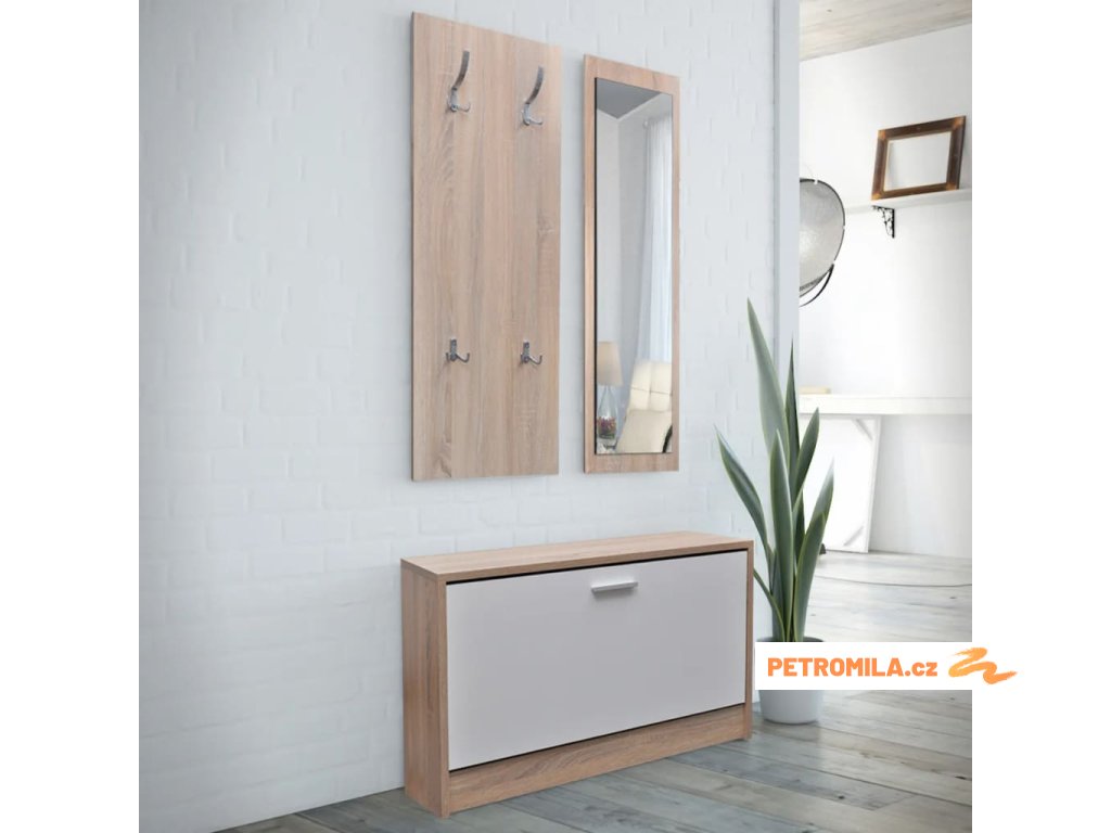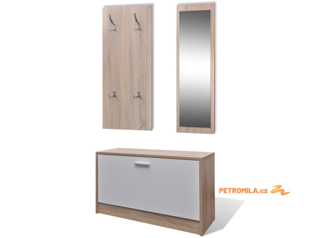 Dřevěná sestava do předsíně 3 v 1 dub a bílá