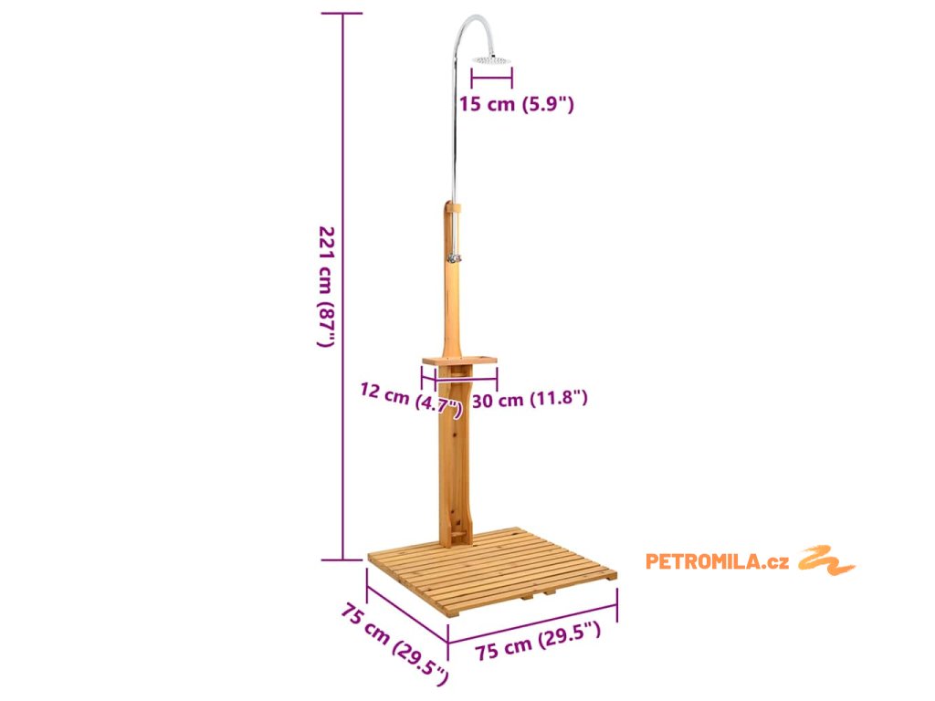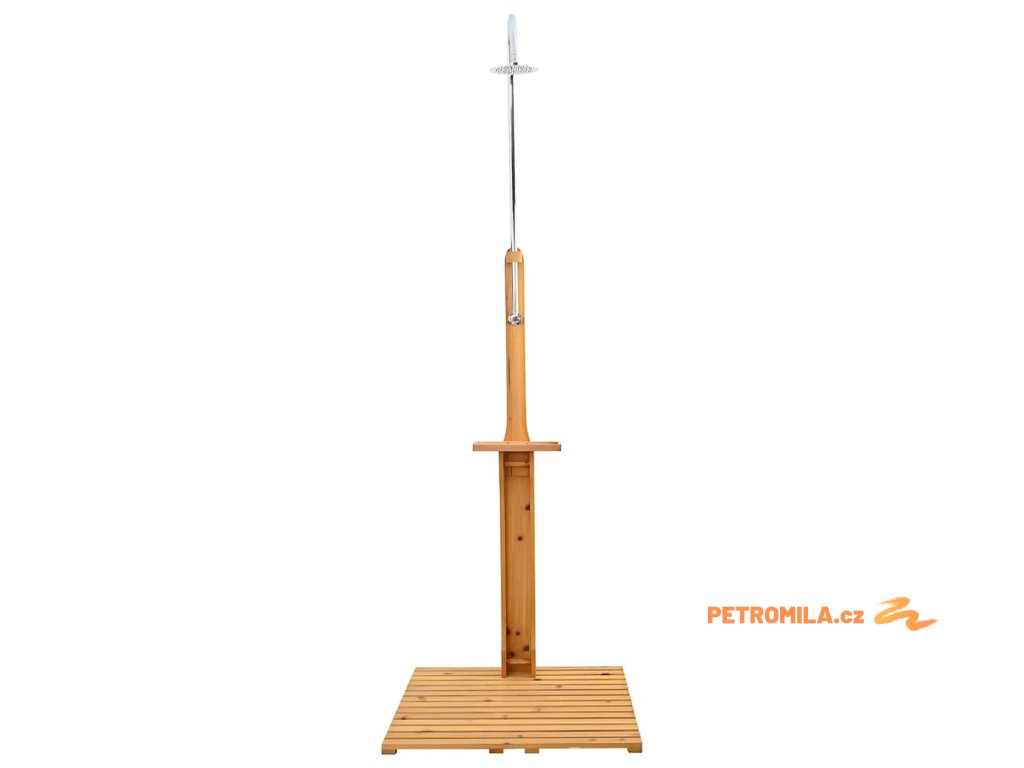Dřevěná zahradní sprcha je schopna odolávat slunečnímu záření, dešti a mrazu a zajistí vám příjemné osvěžení na dvorku, v kempu nebo po koupání venku.