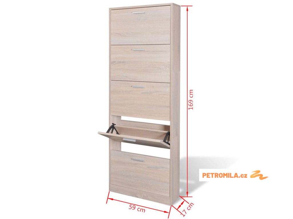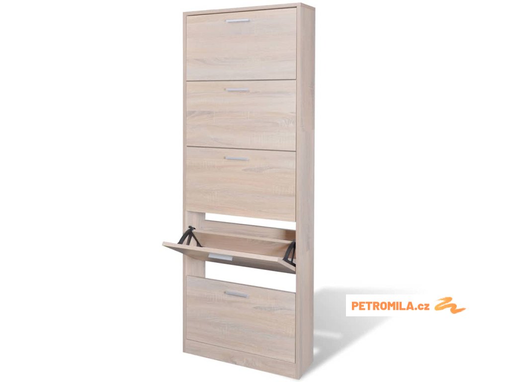 Tento dřevěný botník obsahuje 5 přihrádek a je vyroben v jednoduchém, avšak stylovém designu. Od této chvíle se vaše boty nebudou více povalovat po zemi.