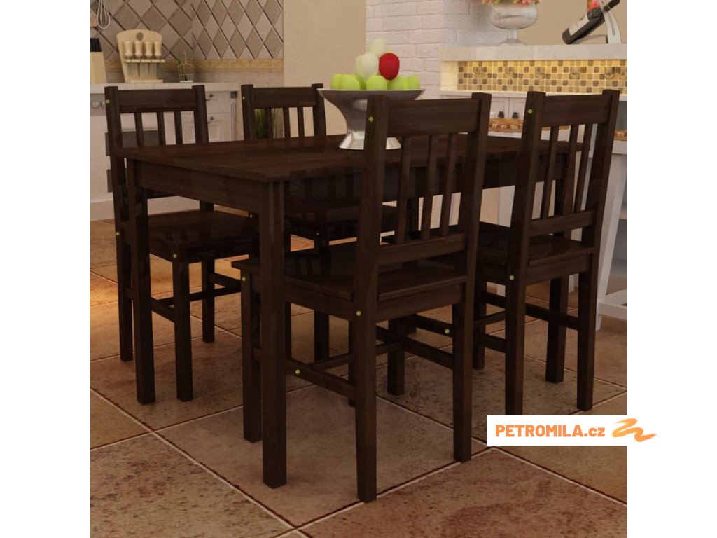 Dřevěný stůl se 4 židlemi, hnědá barva