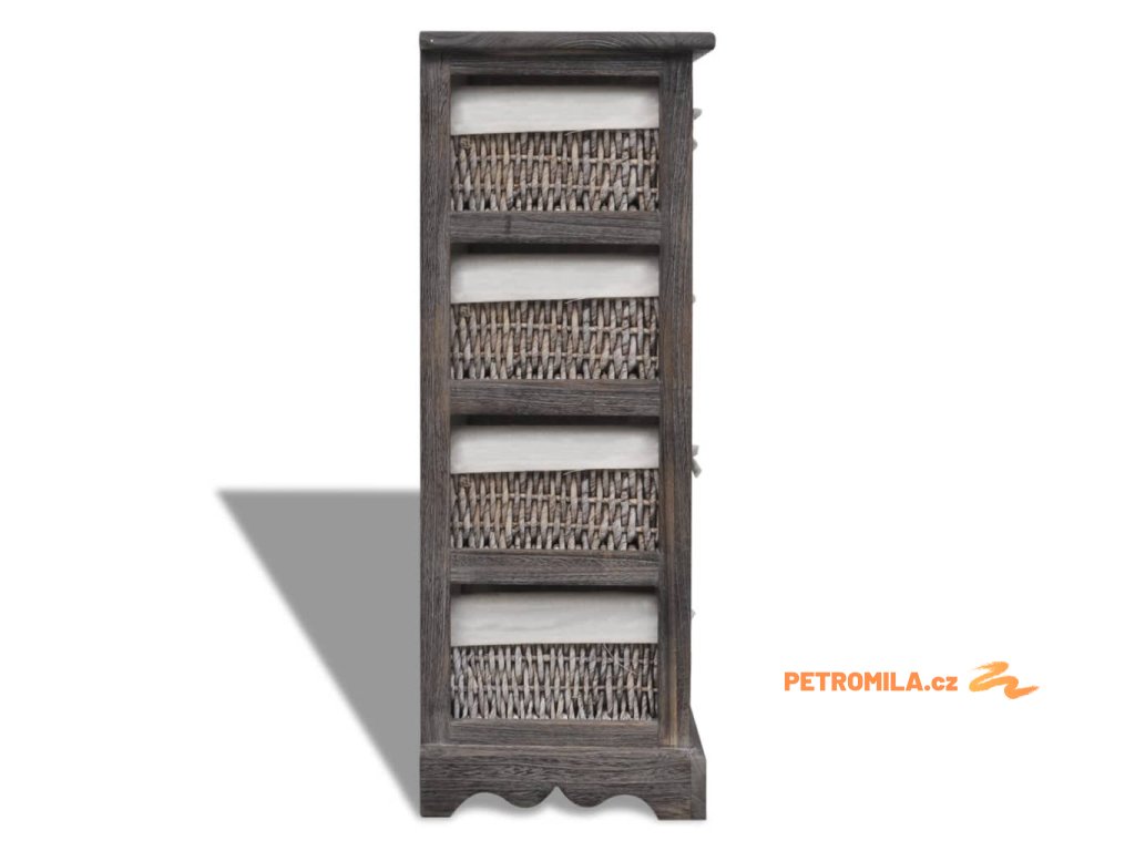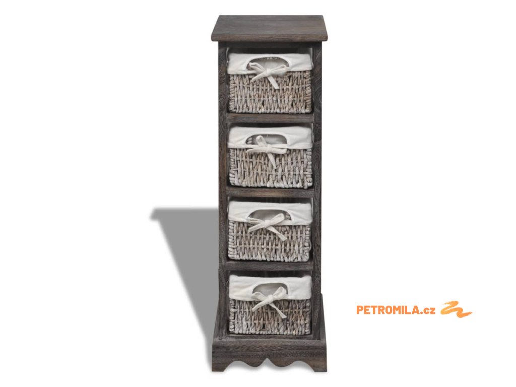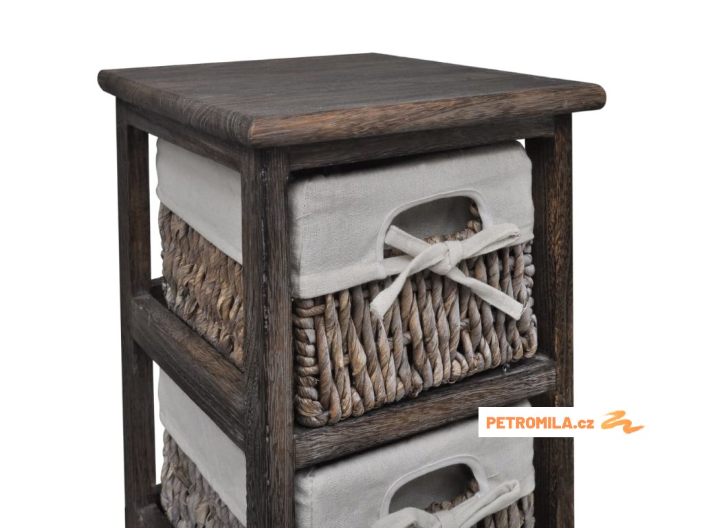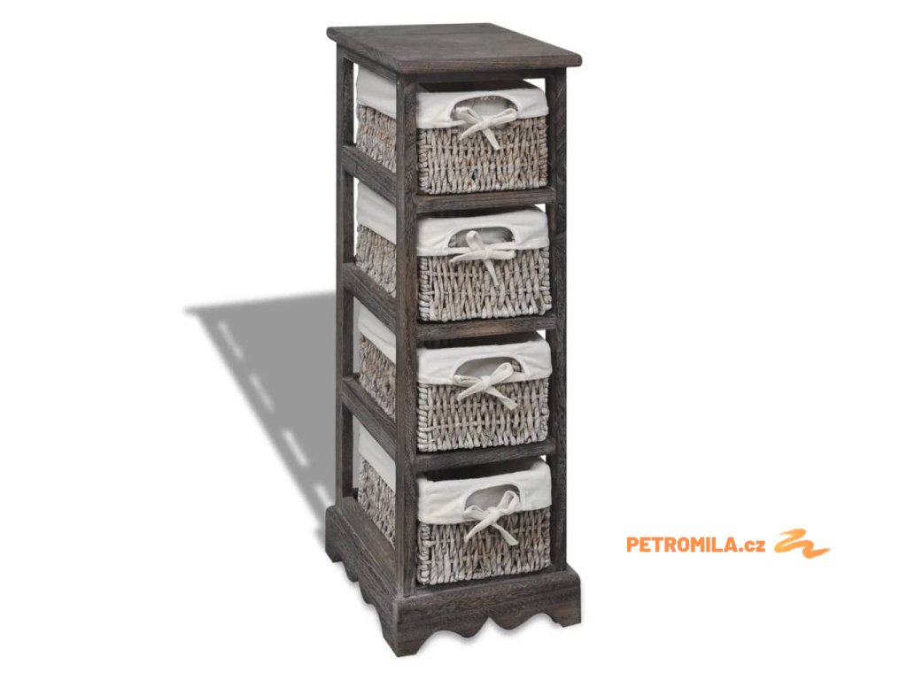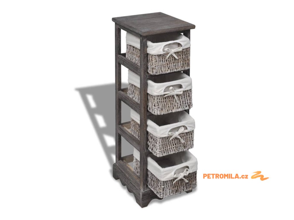 Dřevěný úložný regál s 4 proutěnými košíky hnědý