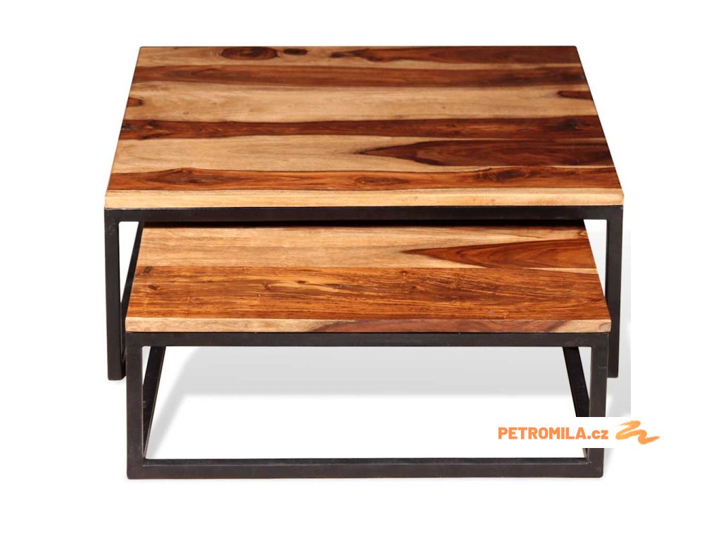 Desky stolů jsou vyrobeny ze akáciového masivu s matnou povrchovou úpravou. Do vašeho domova vnesou trochu rustikálního šarmu. Díky krásné kresbě dřeva je každý kousek jedinečný a lehce odlišným od všech ostatních. Akácie je tvrdé tropické dřevo, které je proslavené svou bohatou kresbou a známé také jako palisandr nebo růžové dřevo. Odolná kovová konstrukce stolků vašemu interiéru dodá industriální šmrnc.