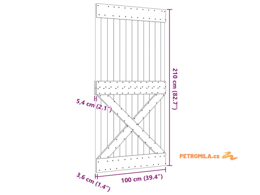 - Rozměry: 100 x 3,6 x 210 cm (Š x H x V)