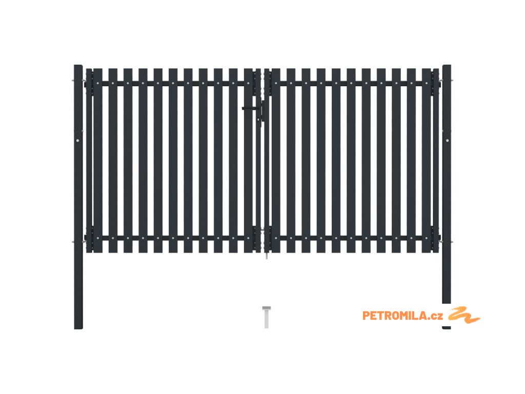 Dvojitá plotová branka ocelová 306 x 150 cm antracitová