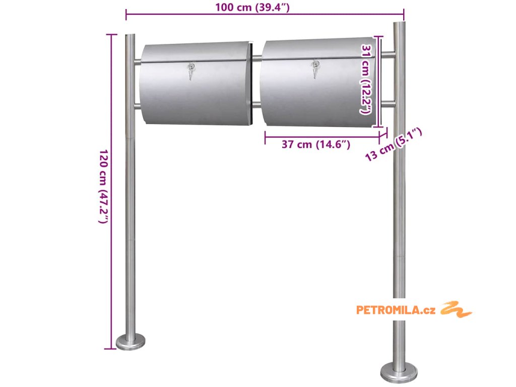 Dvojitá poštovní schránka se stojanem nerezová ocel