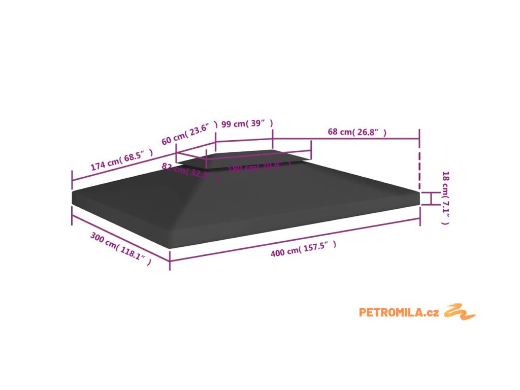 - Velikost horní stříšky: 179 x 82 cm (D x Š)