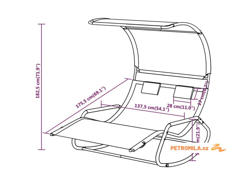 - Pevný rám: Dvojité lehátko má ocelový rám s práškovým nástřikem, který zajišťuje pevnost a stabilitu.