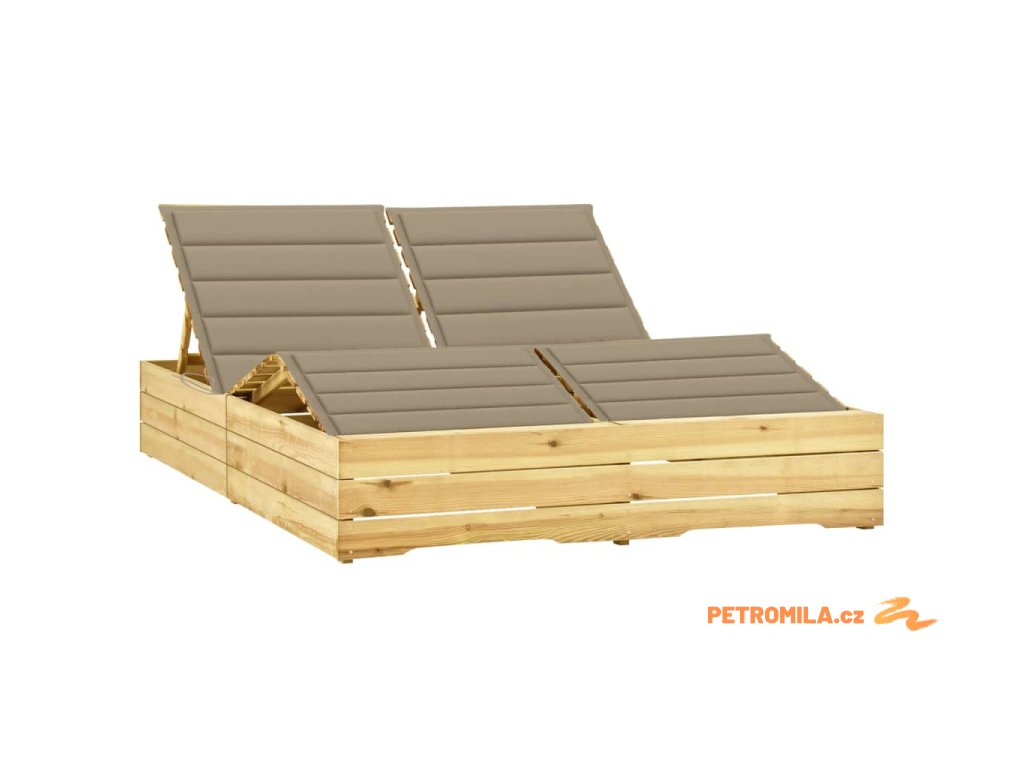 Dvojité lehátko s béžovými poduškami impregnovaná borovice