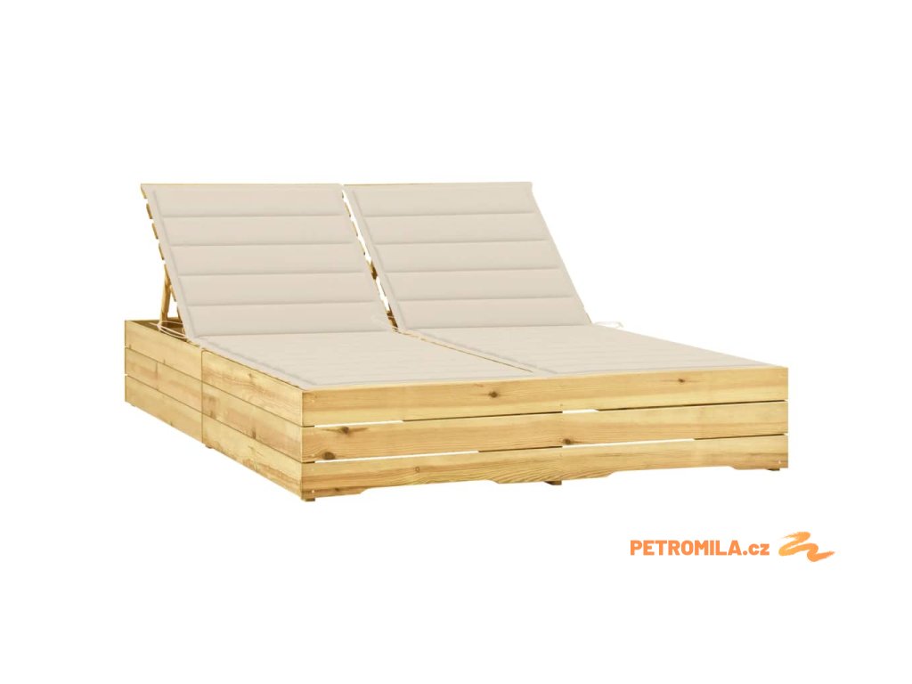 Dvojité lehátko s krémovými poduškami impregnovaná borovice
