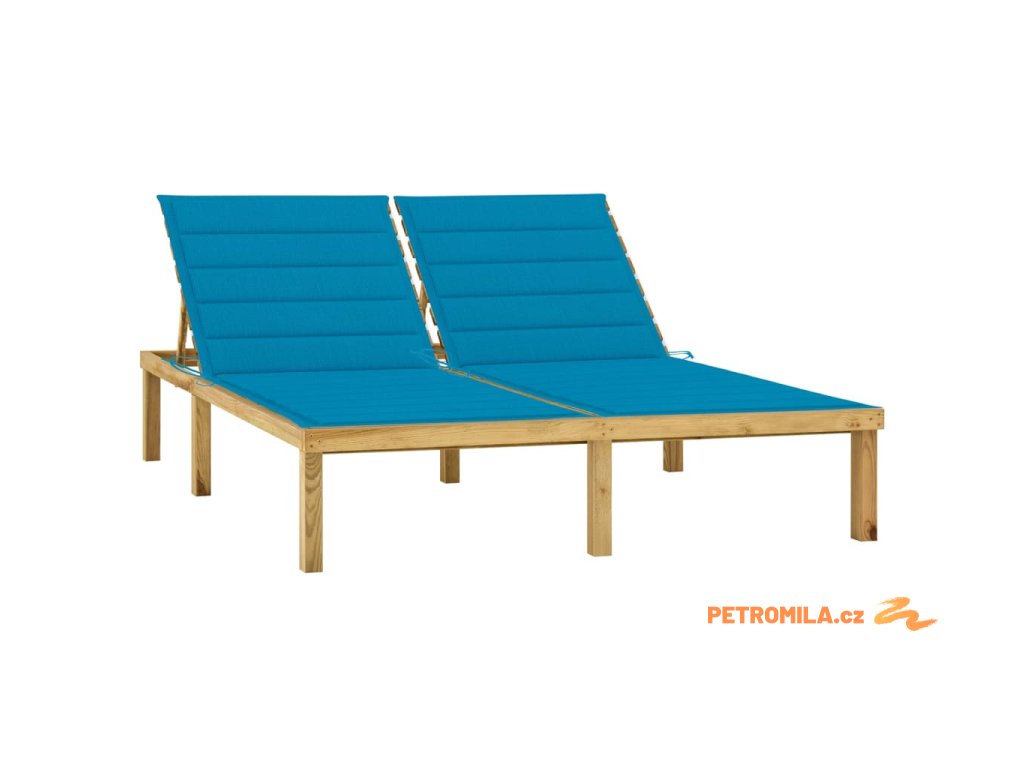 Dvojité lehátko s modrými poduškami impregnovaná borovice