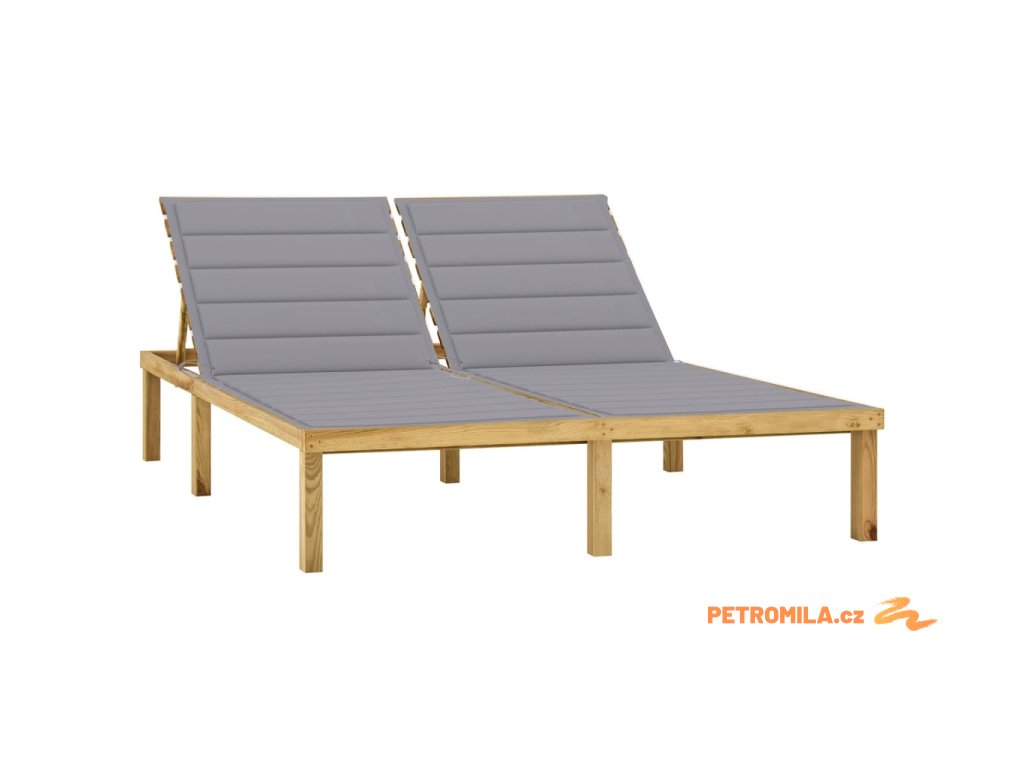 Dvojité lehátko s šedými poduškami impregnovaná borovice