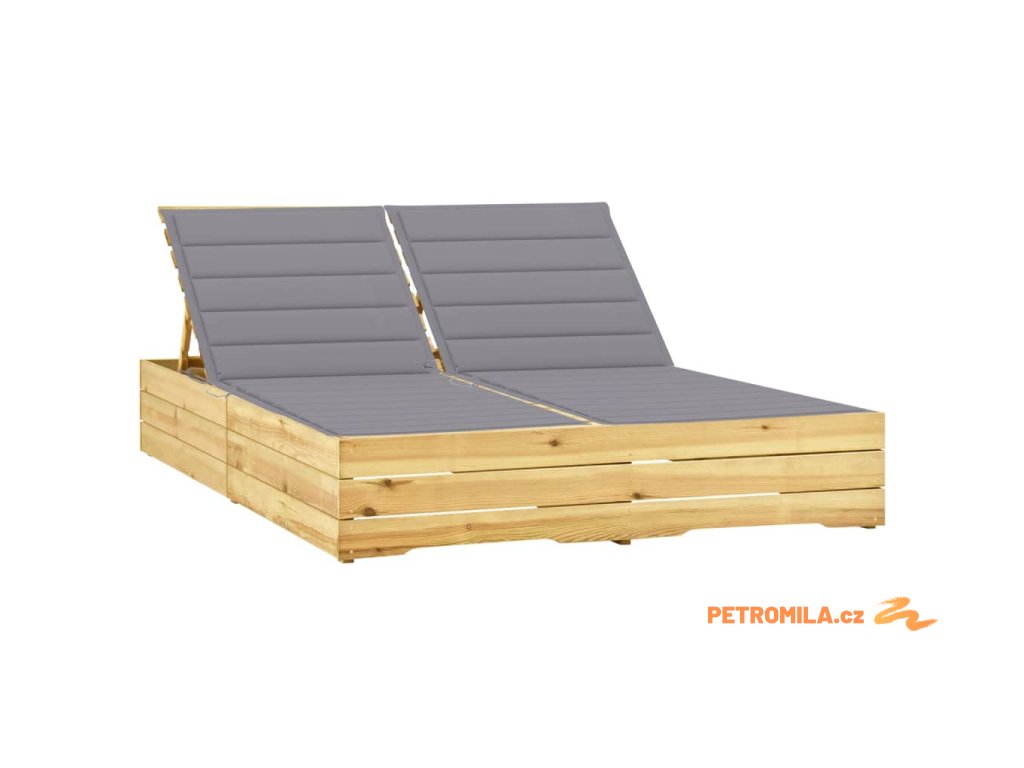 Dvojité lehátko s šedými poduškami impregnovaná borovice