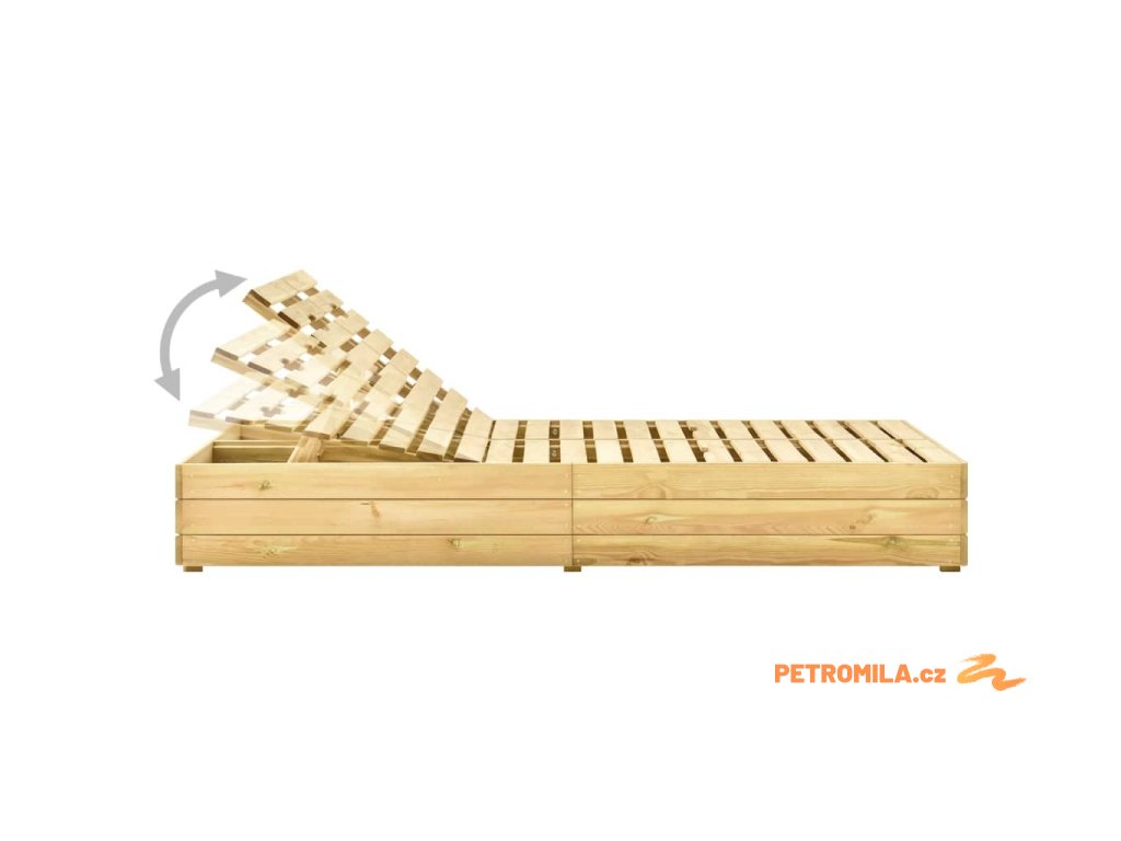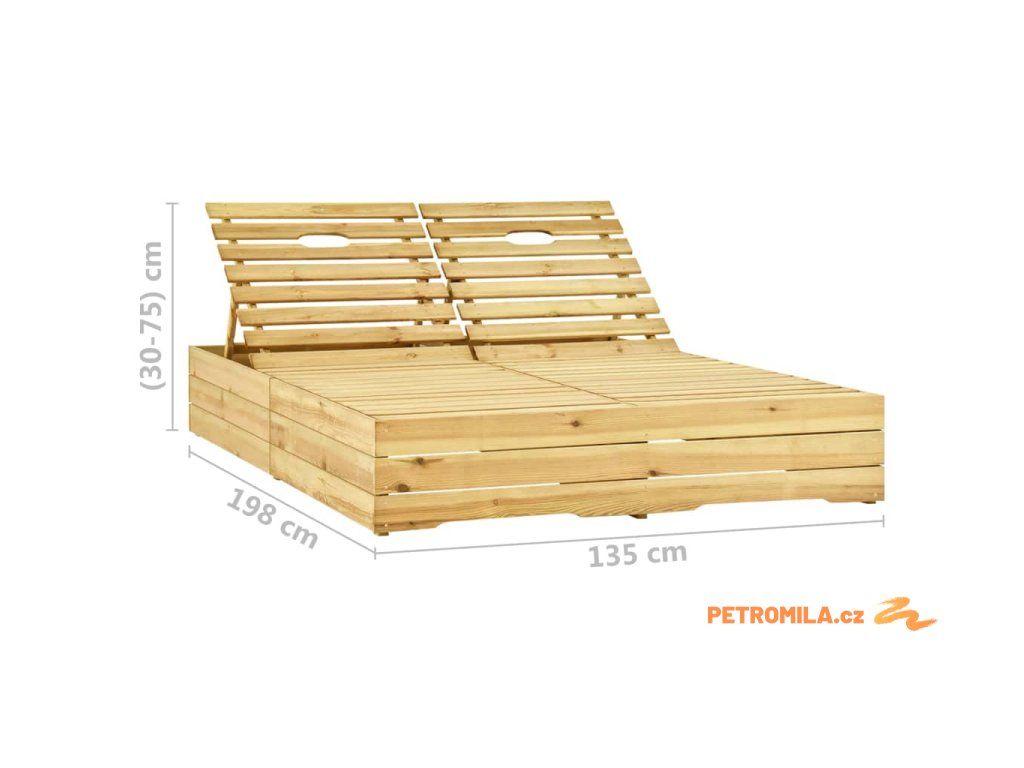 Dvojité zahradní lehátko je zhotovené z impregnované borovice, takže výborně odolává klimatickým vlivům, má dlouhou životnost a dá se snadno čistit navlhčeným hadříkem. Výšku opěradla si můžete nastavit dle vlastní potřeby, abyste se mohli co nejpohodlněji uvelebit. Poduška, která je součástí balení, představuje víc než jen praktický doplněk – plní také dekorativní funkci.