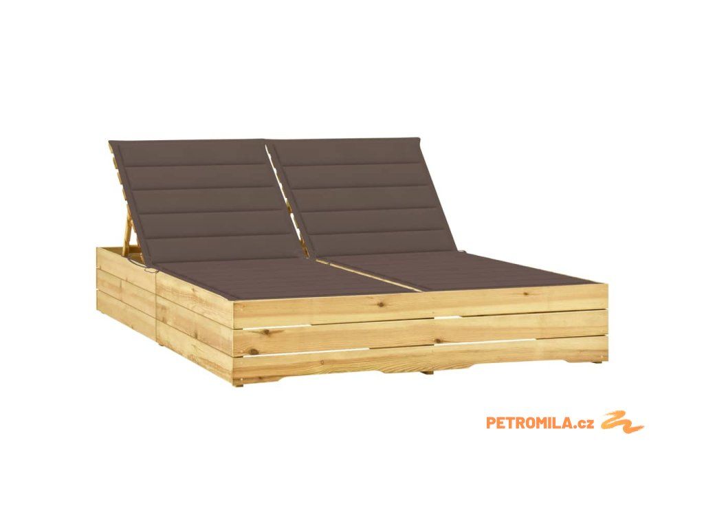 Dvojité lehátko s taupe poduškami impregnovaná borovice