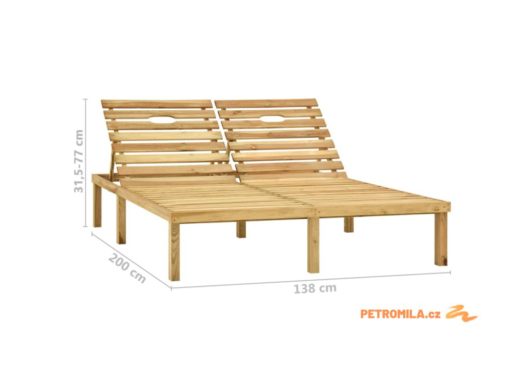 Dvojité zahradní lehátko je zhotovené z impregnované borovice, takže výborně odolává klimatickým vlivům, má dlouhou životnost a dá se snadno čistit navlhčeným hadříkem. Výšku opěradla si můžete nastavit dle vlastní potřeby, abyste se mohli co nejpohodlněji uvelebit. Poduška, která je součástí balení, představuje víc než jen praktický doplněk – plní také dekorativní funkci.