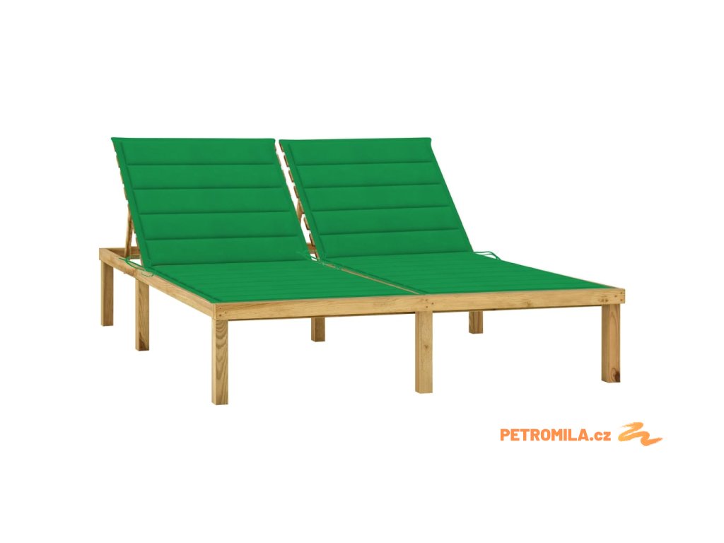 Dvojité lehátko se zelenými poduškami impregnovaná borovice