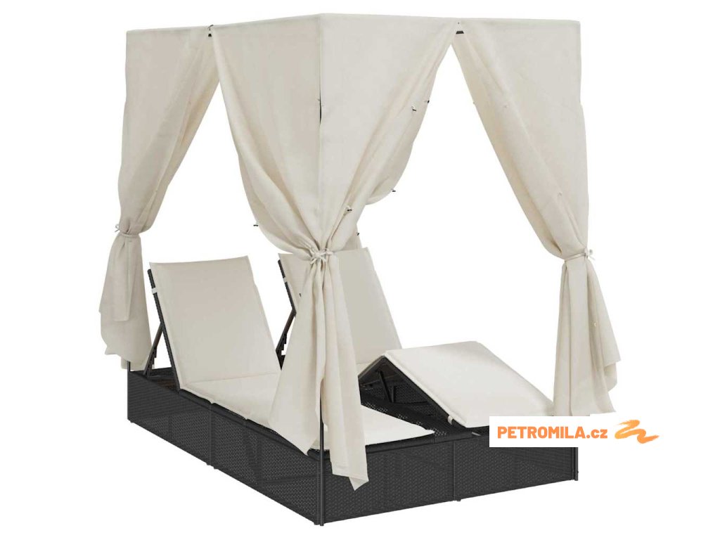 Dvojité sluneční lehátko s střechou Černá 205 x 129 x 200 cm