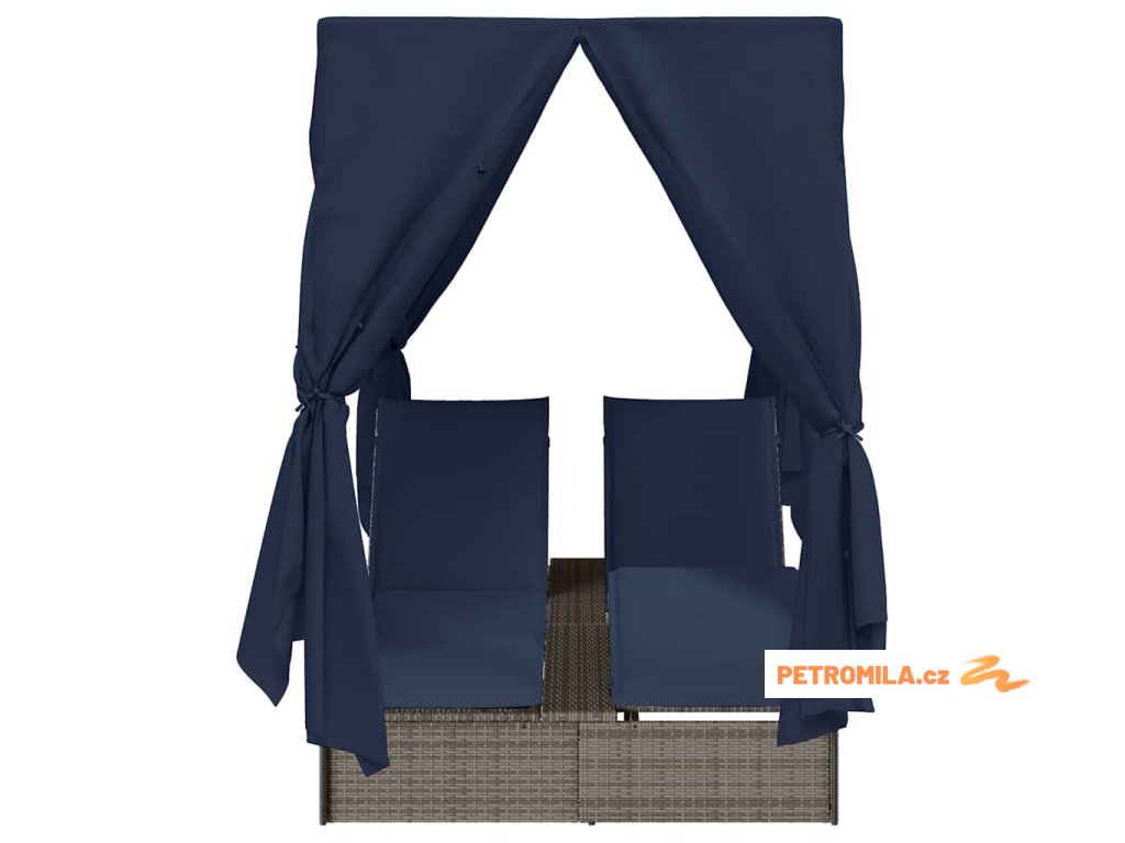 Dvojité sluneční lehátko s střechou Šedá 205 x 129 x 200 cm
