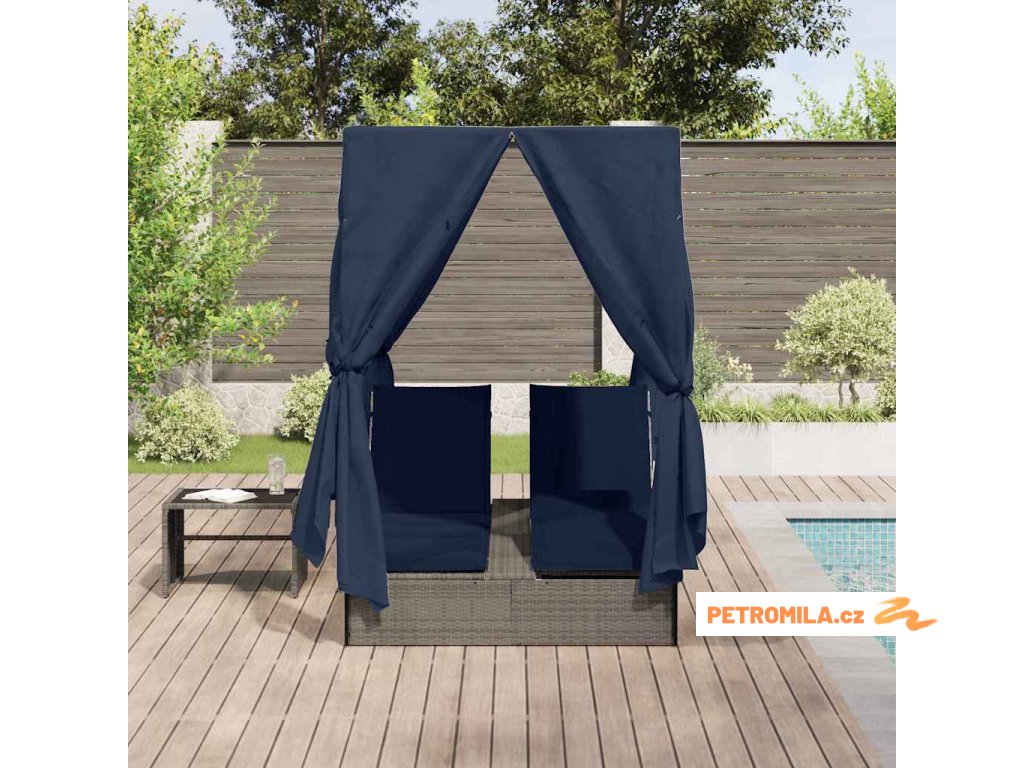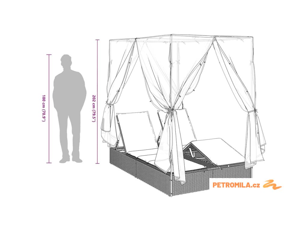 Mrkni na tohle skvělý venkovní dvojité lehátko se střechou a závěsy – je to ideální pro lenošení venku. Představ si, jak si užíváš sluneční paprsky na krásném ránu nebo se uvolňuješ v příjemném večeru, a to všechno v pohodlí a stínu díky tomuhle parádnímu lehátku. Má elegantní design a variabilní uspořádání, takže je super volba na zahrady nebo terasy, a poskytne ti skvělý zážitek venku.