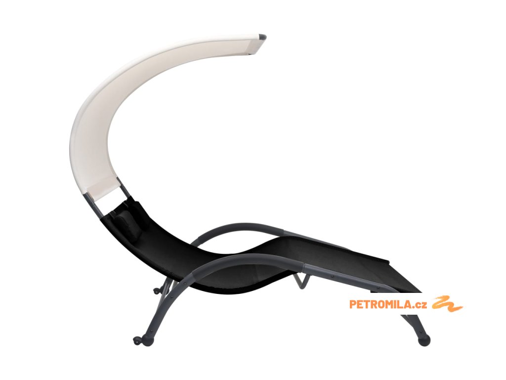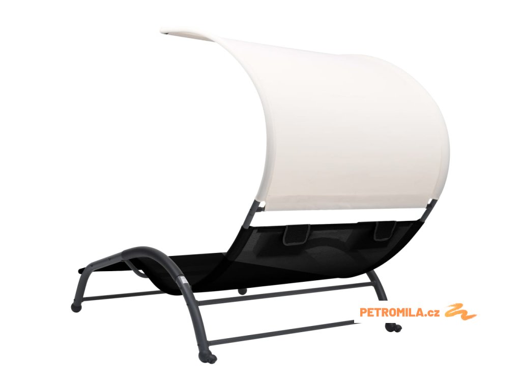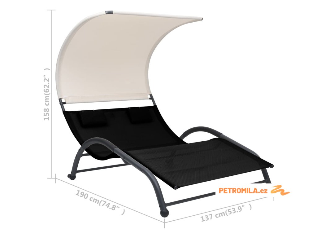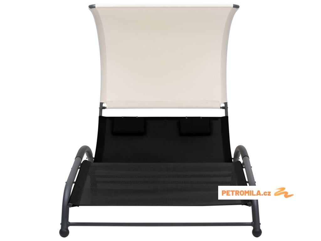 Dvojité zahradní lehátko s baldachýnem textilen černé