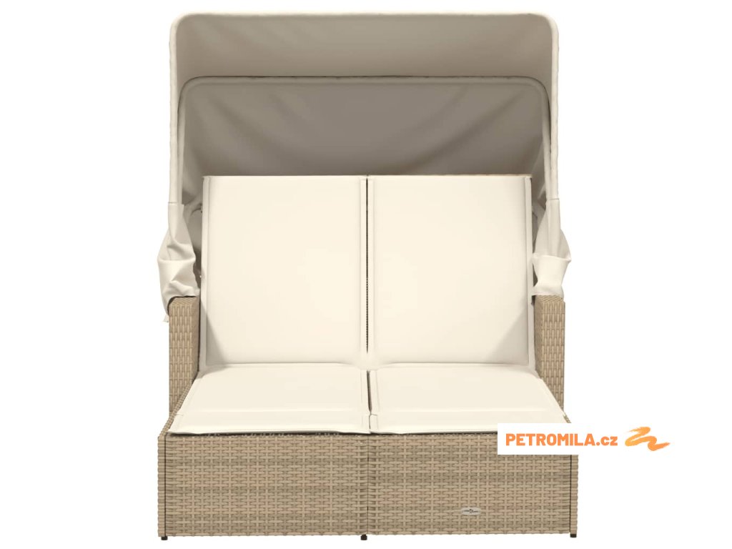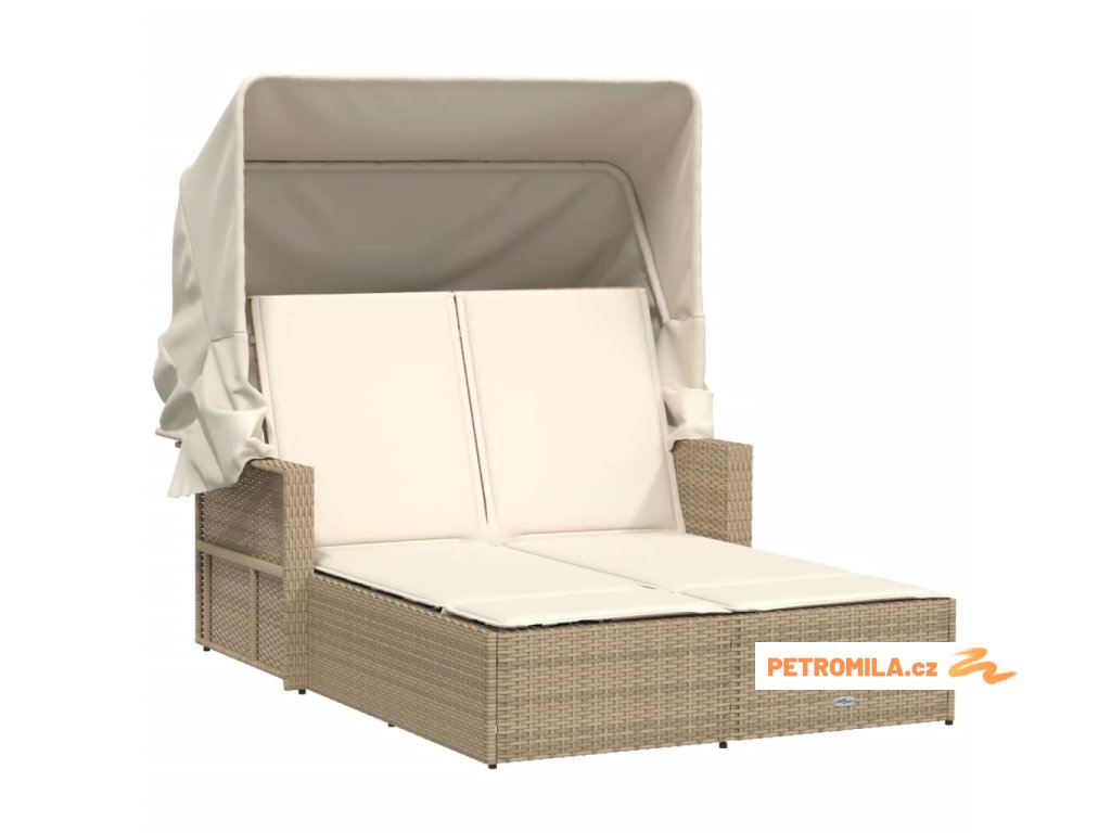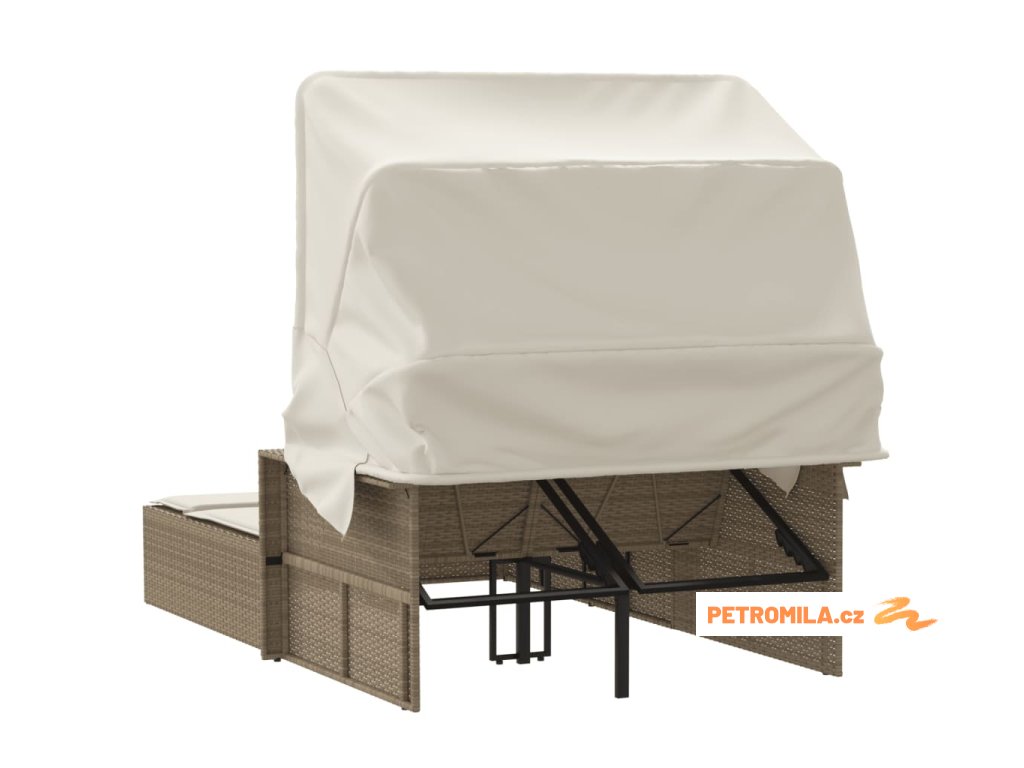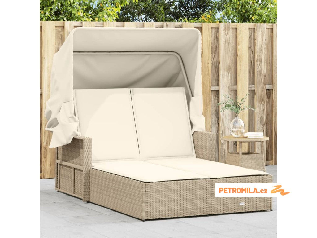 Dvojité zahradní lehátko se stříškou a podušky béžové polyratan