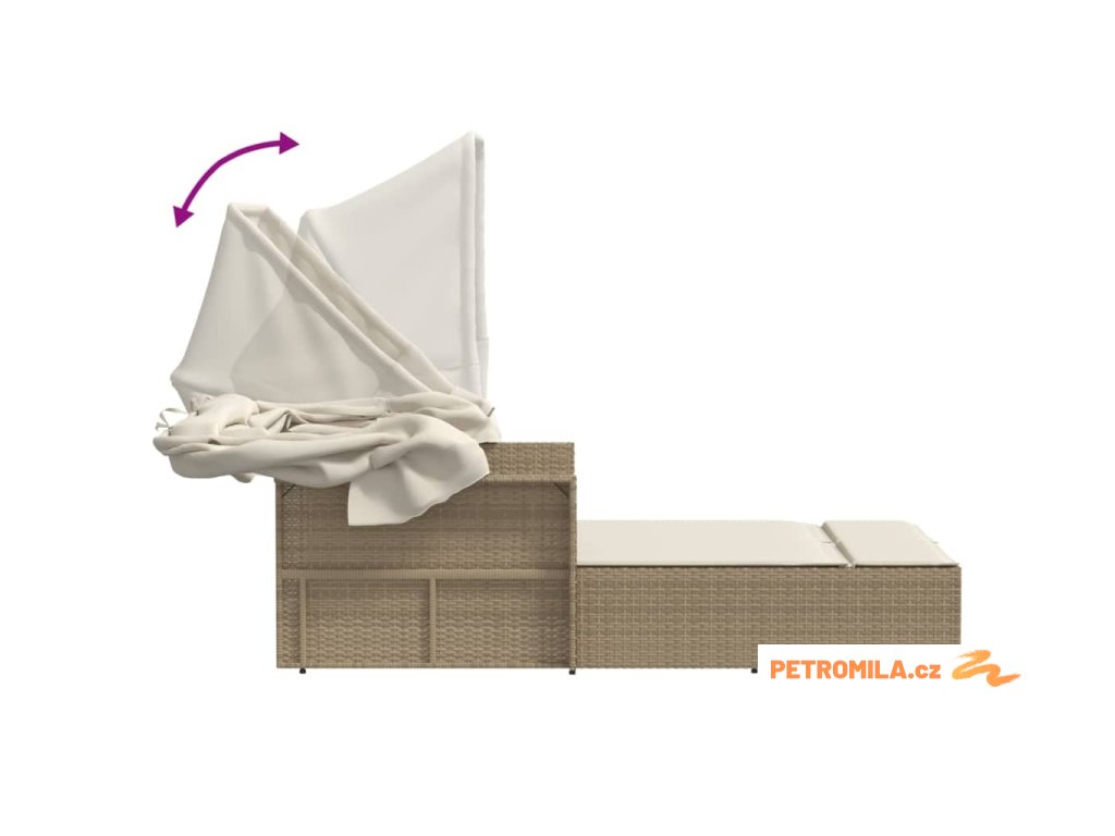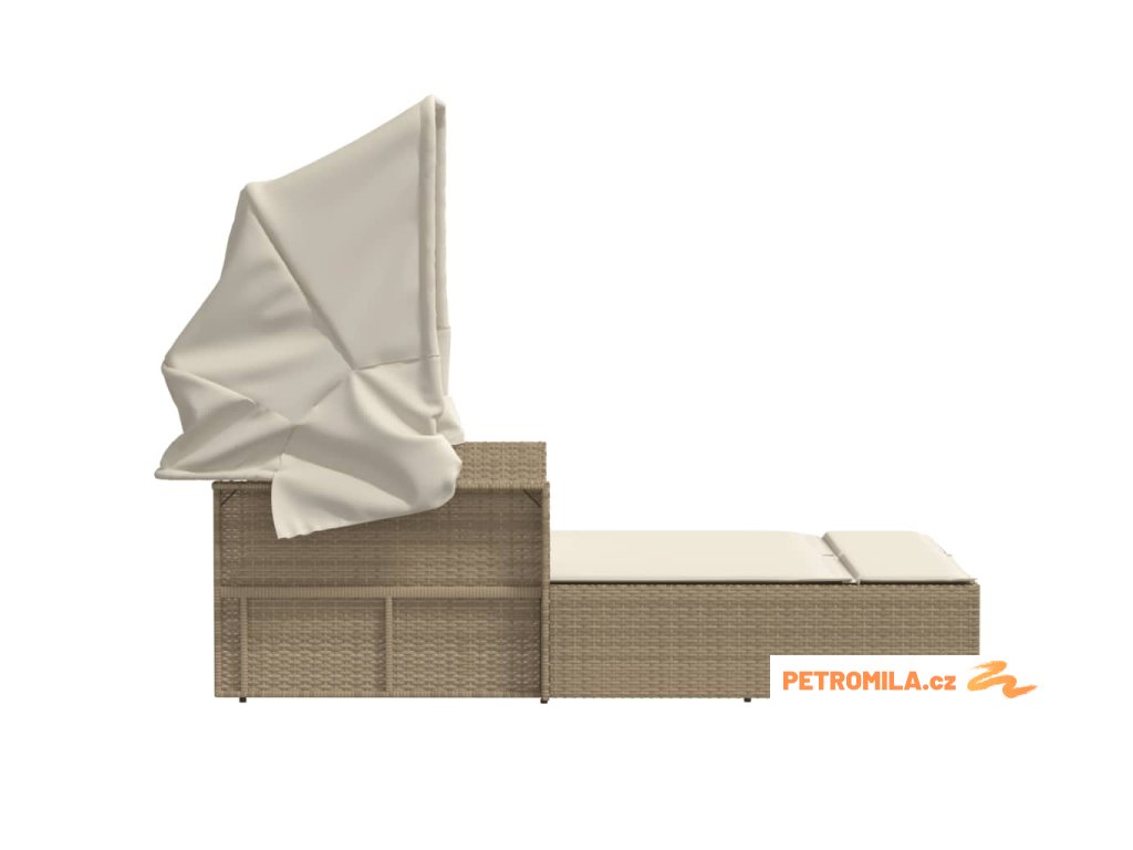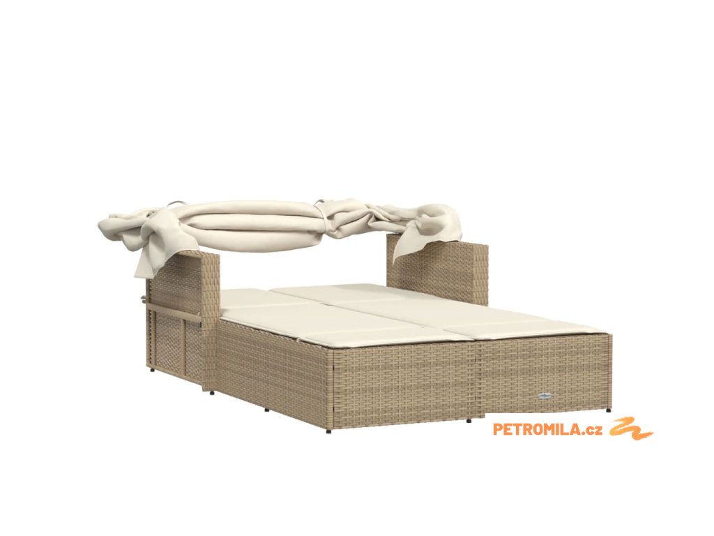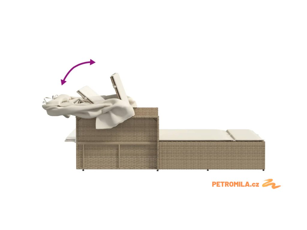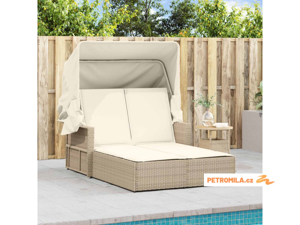 Dvojité zahradní lehátko se stříškou a podušky béžové polyratan