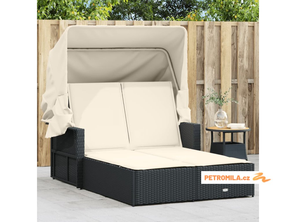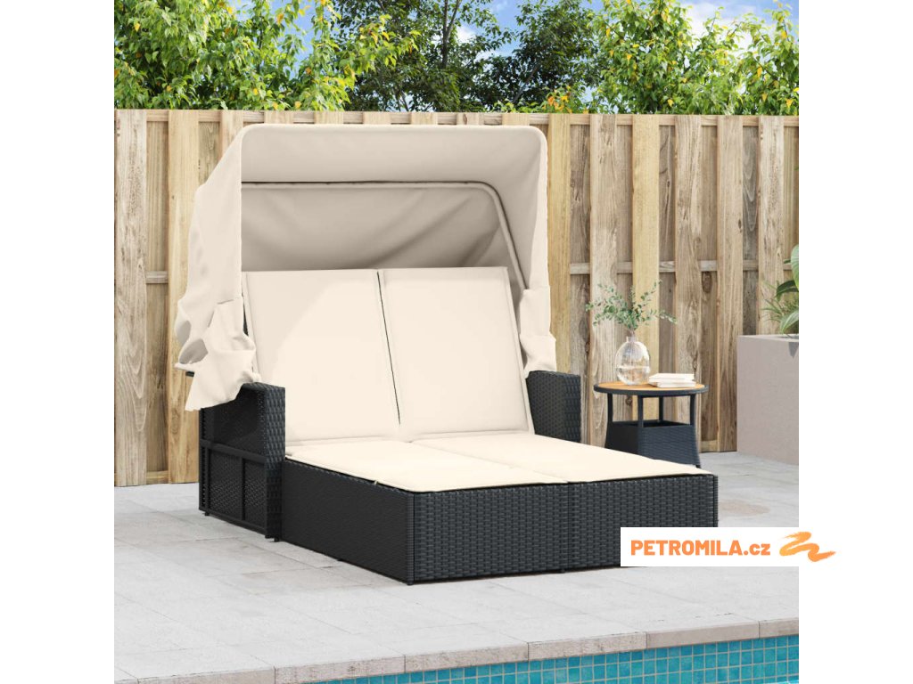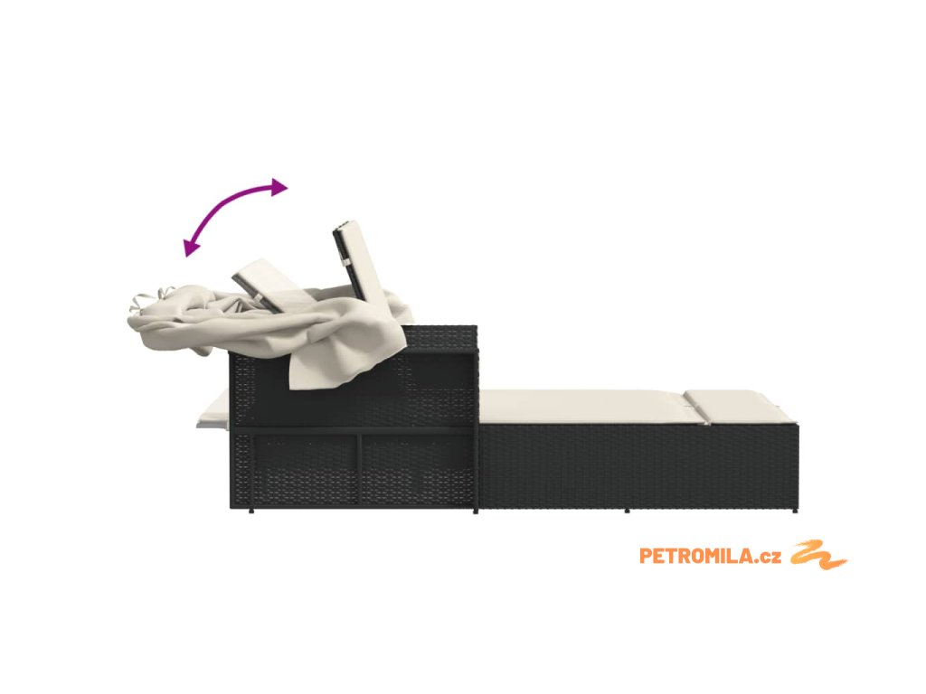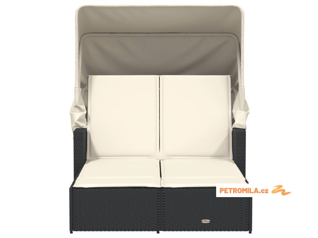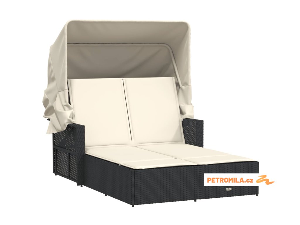 Dvojité zahradní lehátko se stříškou a podušky černé polyratan