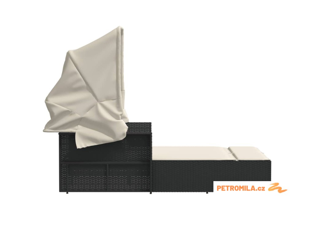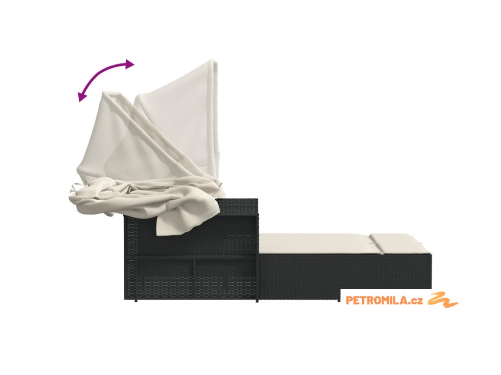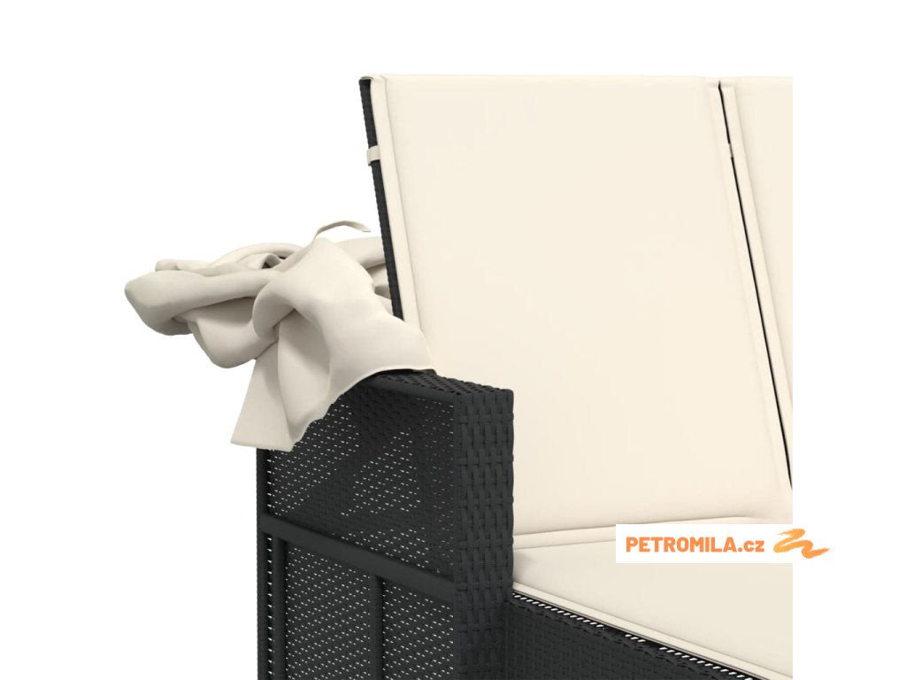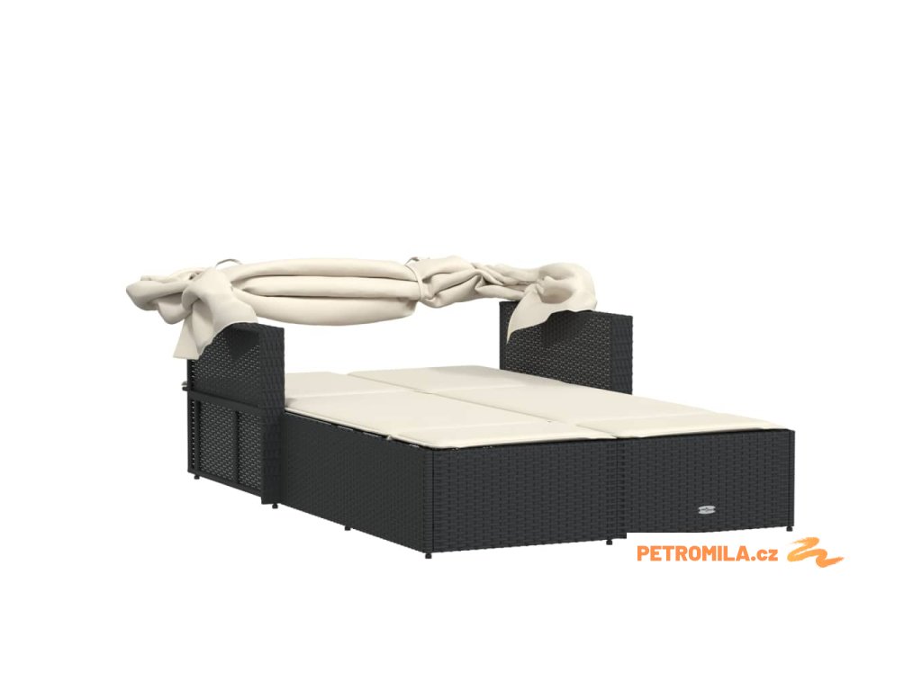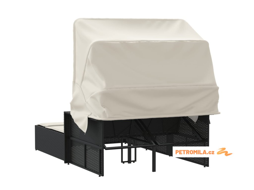 Dvojité zahradní lehátko se stříškou a podušky černé polyratan