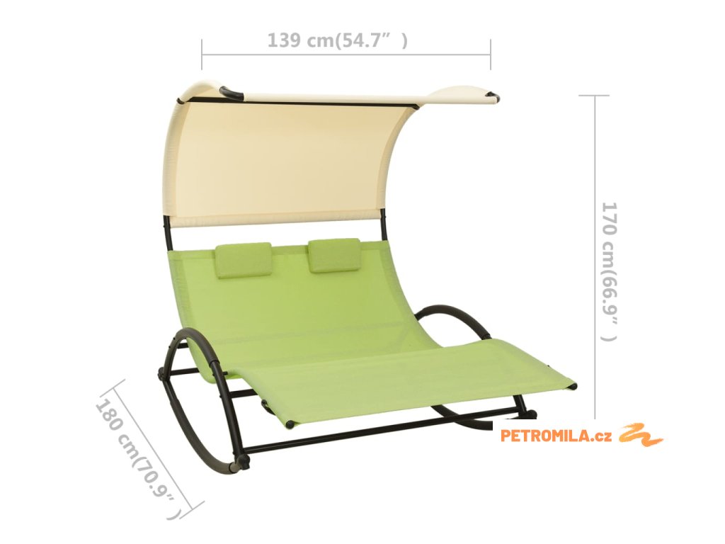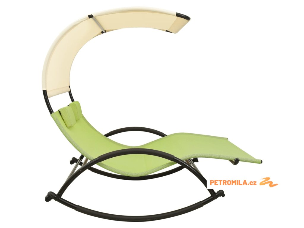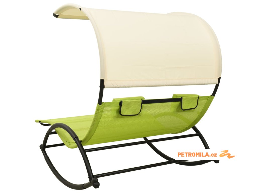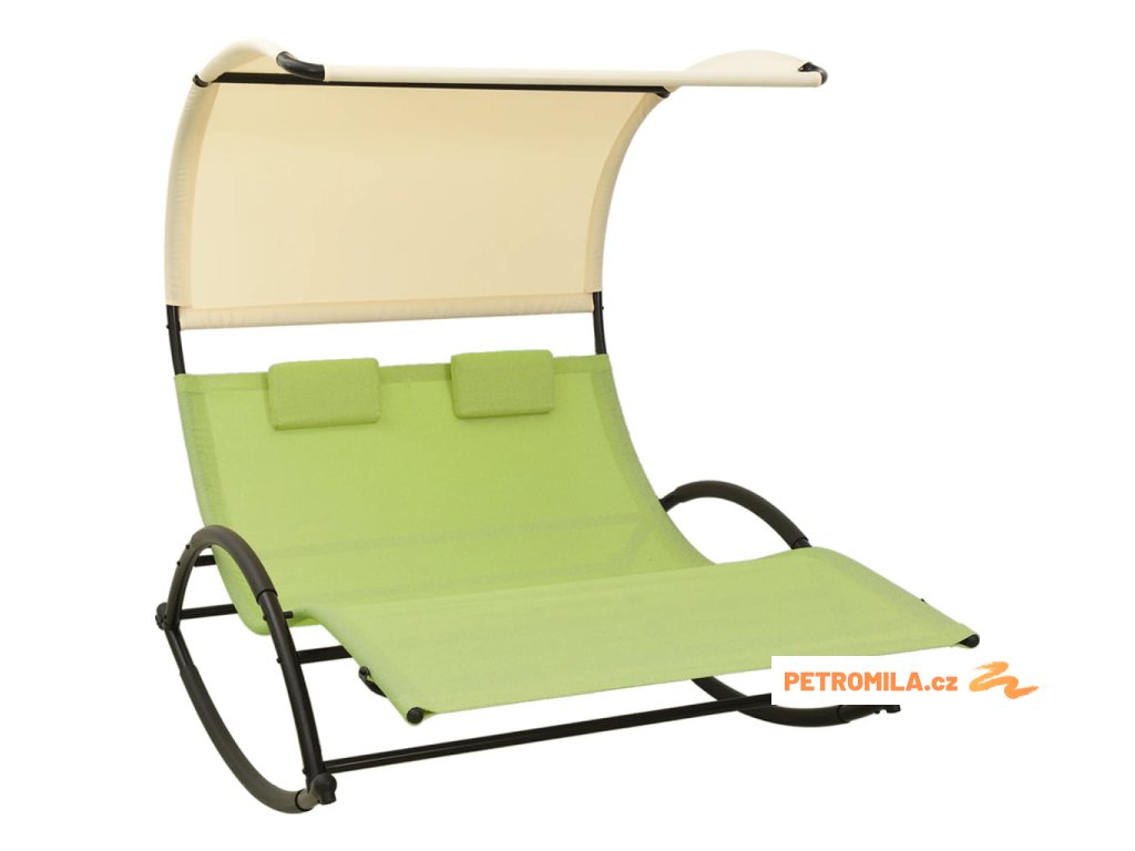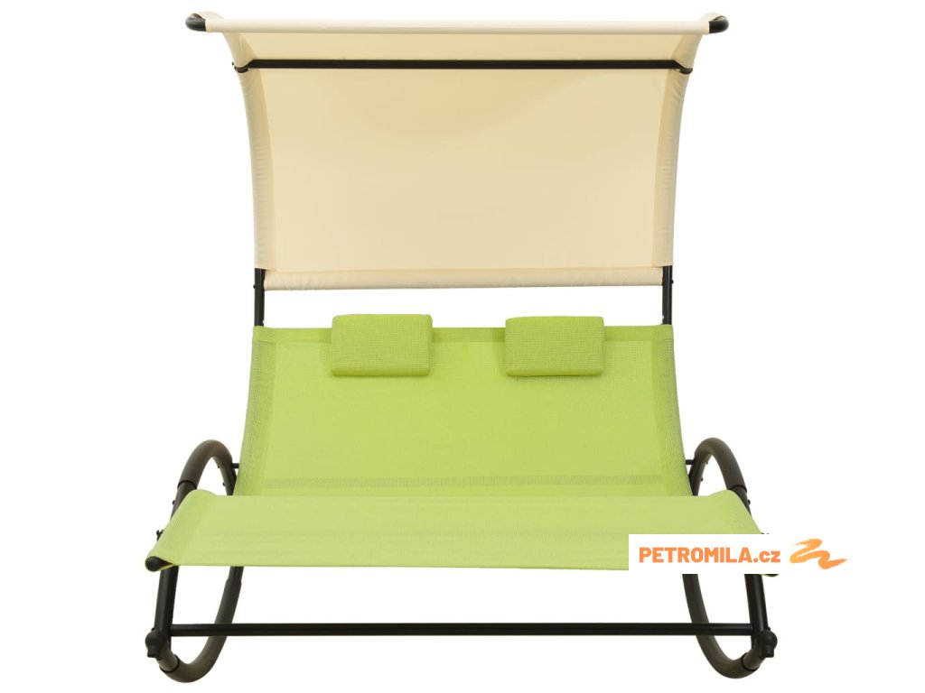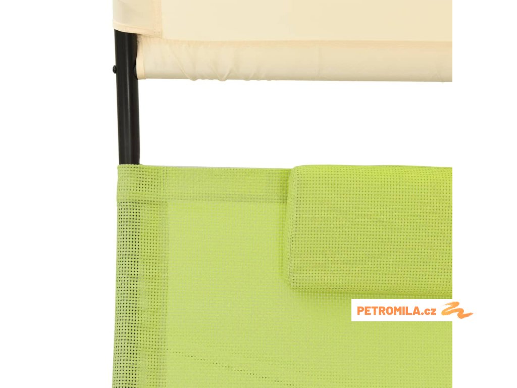Dvojité zahradní lehátko se stříškou textilen zelené a krémové