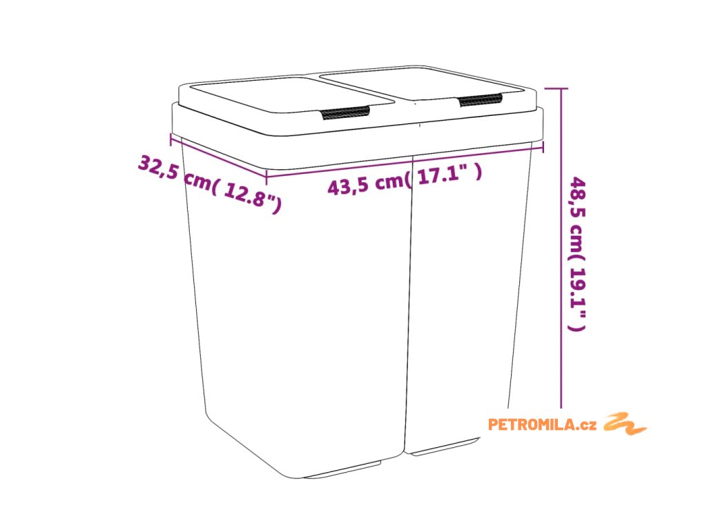 Dvojitý odpadkový koš antracitový 2 x 25 l