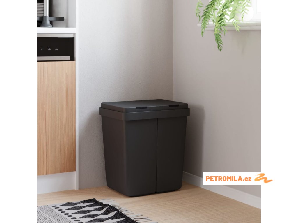 - Koš se dvěma přihrádkami: Tento odpadkový koš se dvěma oddělenými přihrádkami o objemu 25 litrů je skvělý pro separaci recyklovatelných odpadů od běžného kuchyňského odpadu.
