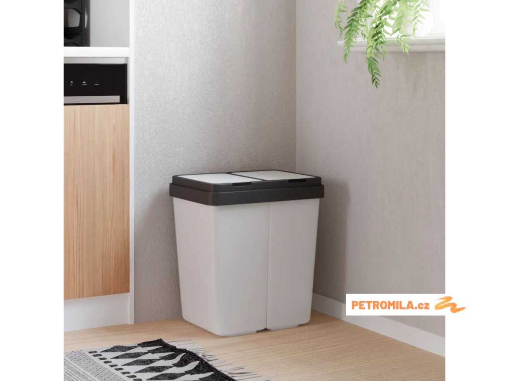 Tento dvojitý odpadkový koš se dvěma separačními přihrádkami je ideální pro třídění odpadu a hygienickou recyklaci.