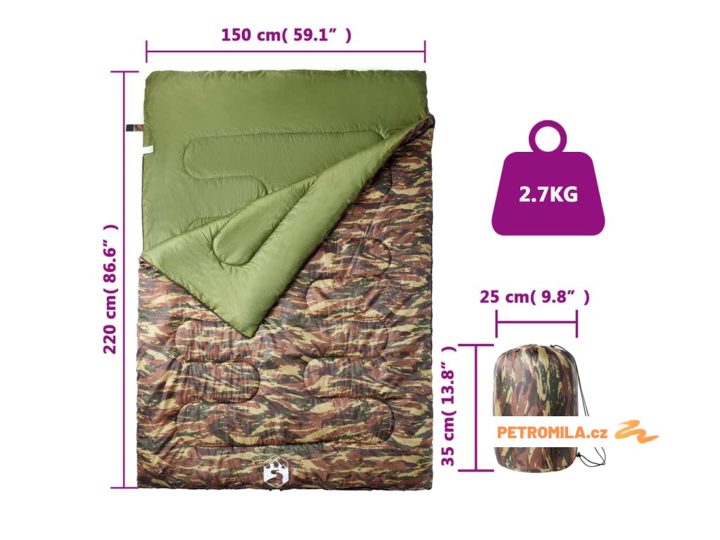 - Rozměry spacího pytle: 220 x 150 cm (D x Š)