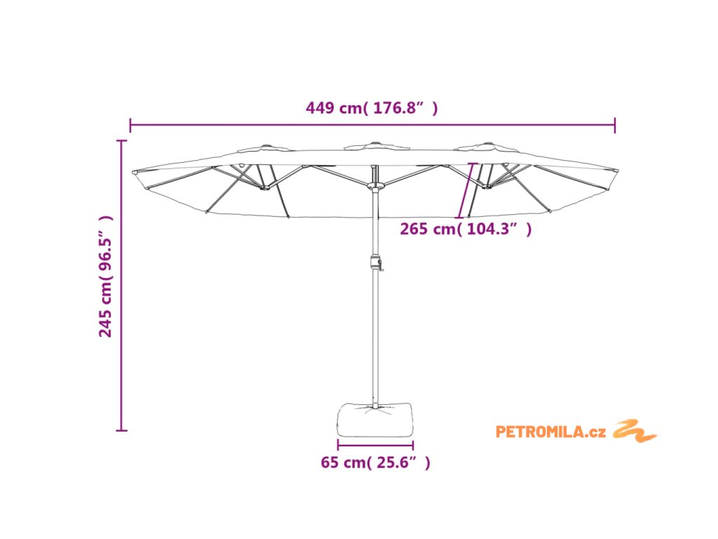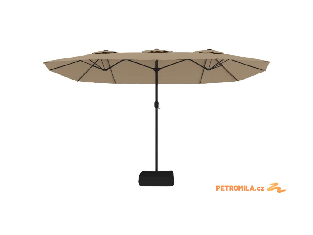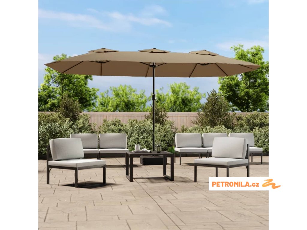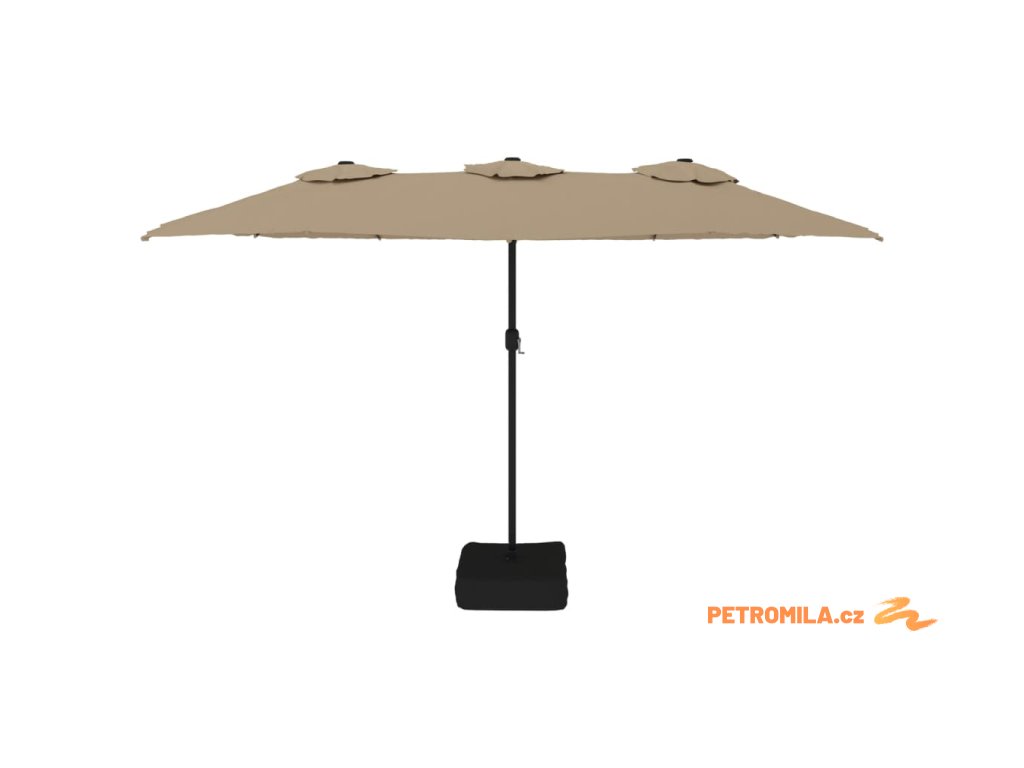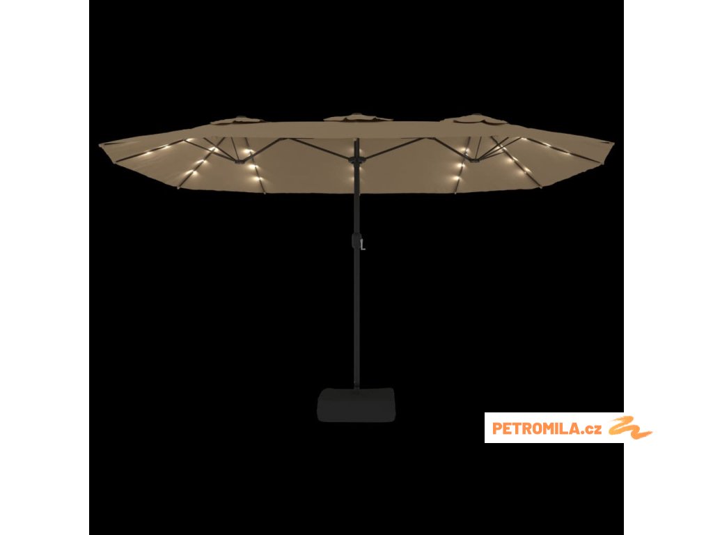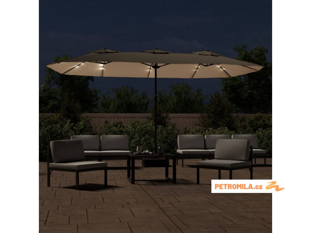 Dvojitý zahradní slunečník s LED taupe 449 x 265 cm