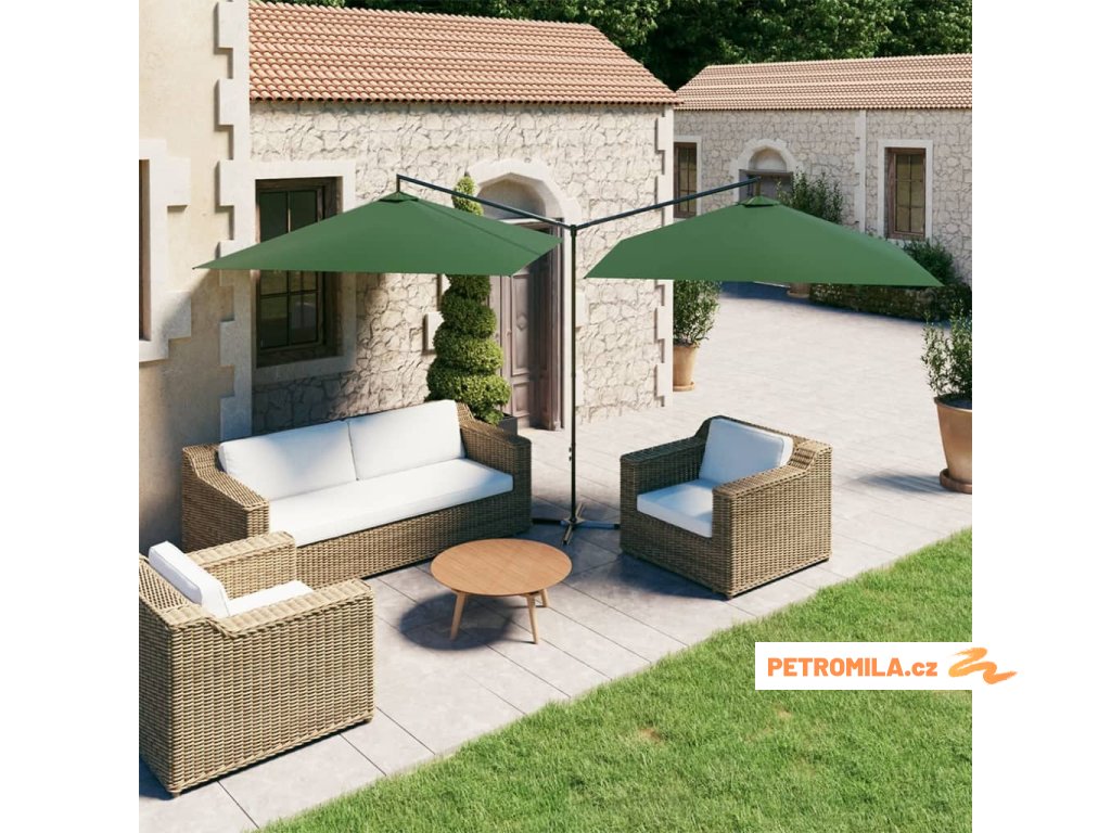 Dvojitý zahradní slunečník s ocelovou tyčí zelený 600 x 300 cm