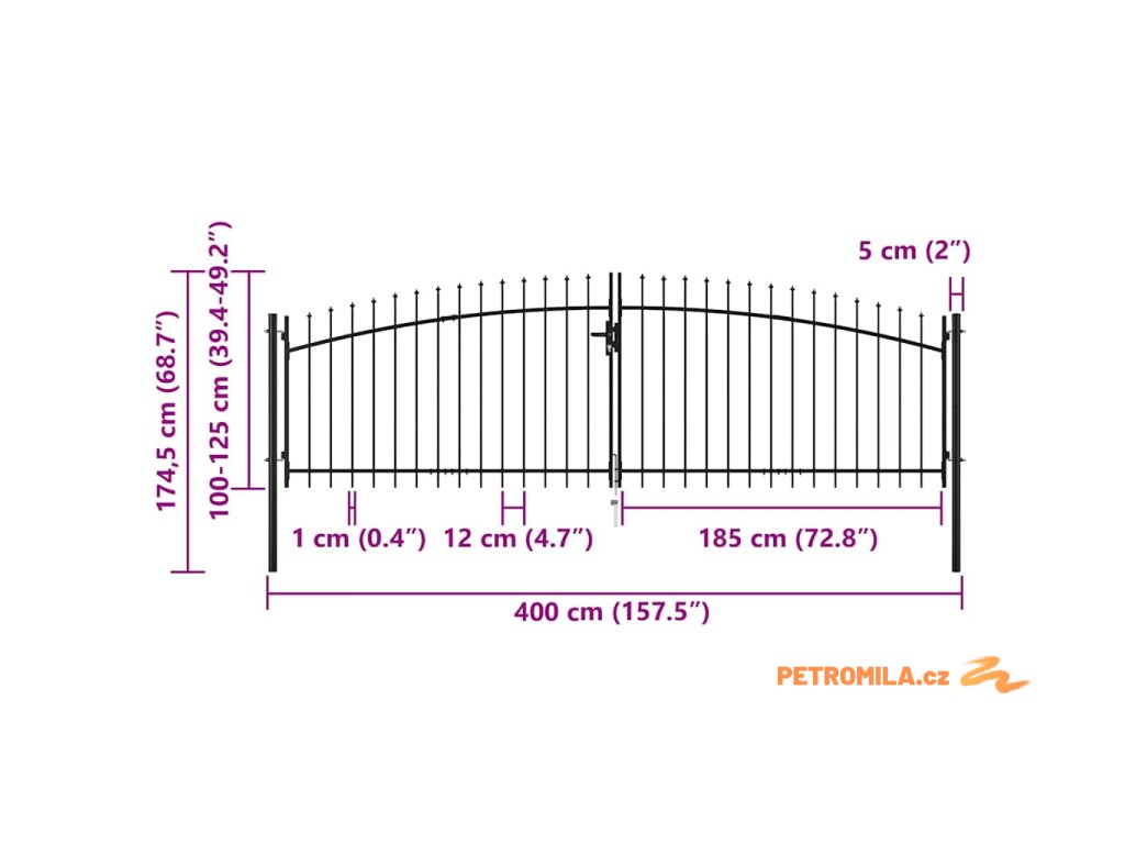 Dvoukřídlá plotová brána s hroty 400 x 175 cm
