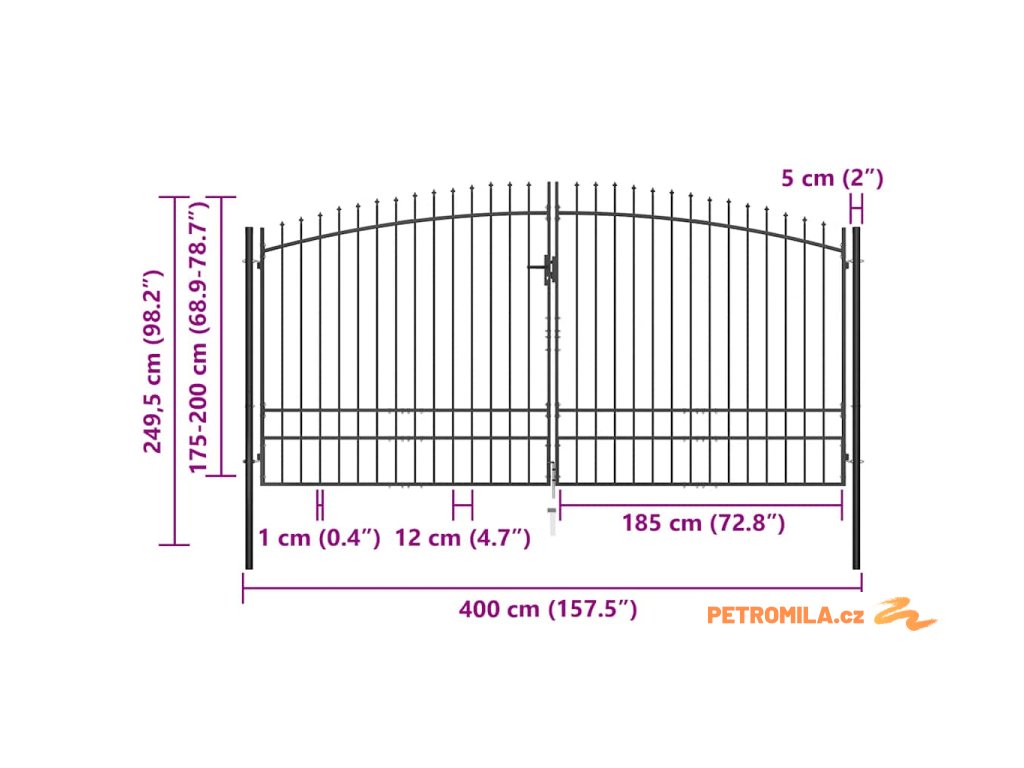 Dvoukřídlá plotová brána s hroty 400 x 248 cm