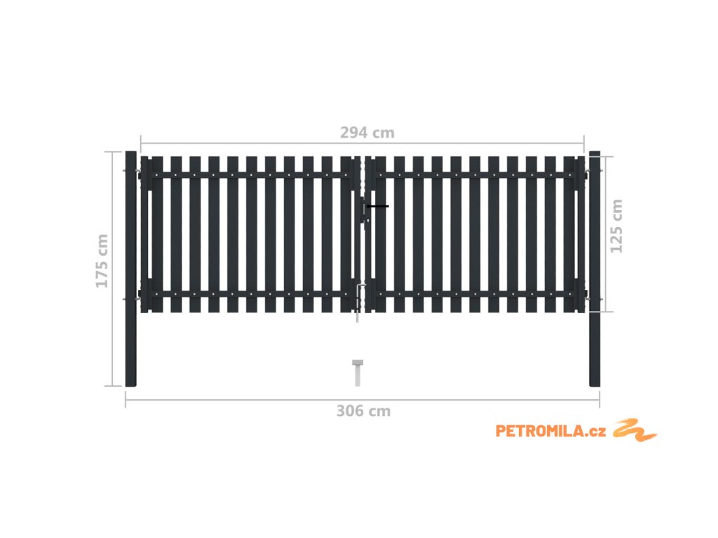 Dvoukřídlá plotová branka ocelová 306 x 125 cm antracitová